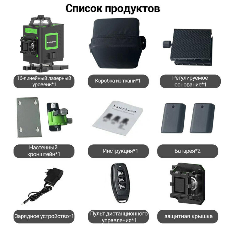 Лазерный уровень/нивелир KaringBee 4D SQT-16 ,16 Линий Зеленый луч интересное: