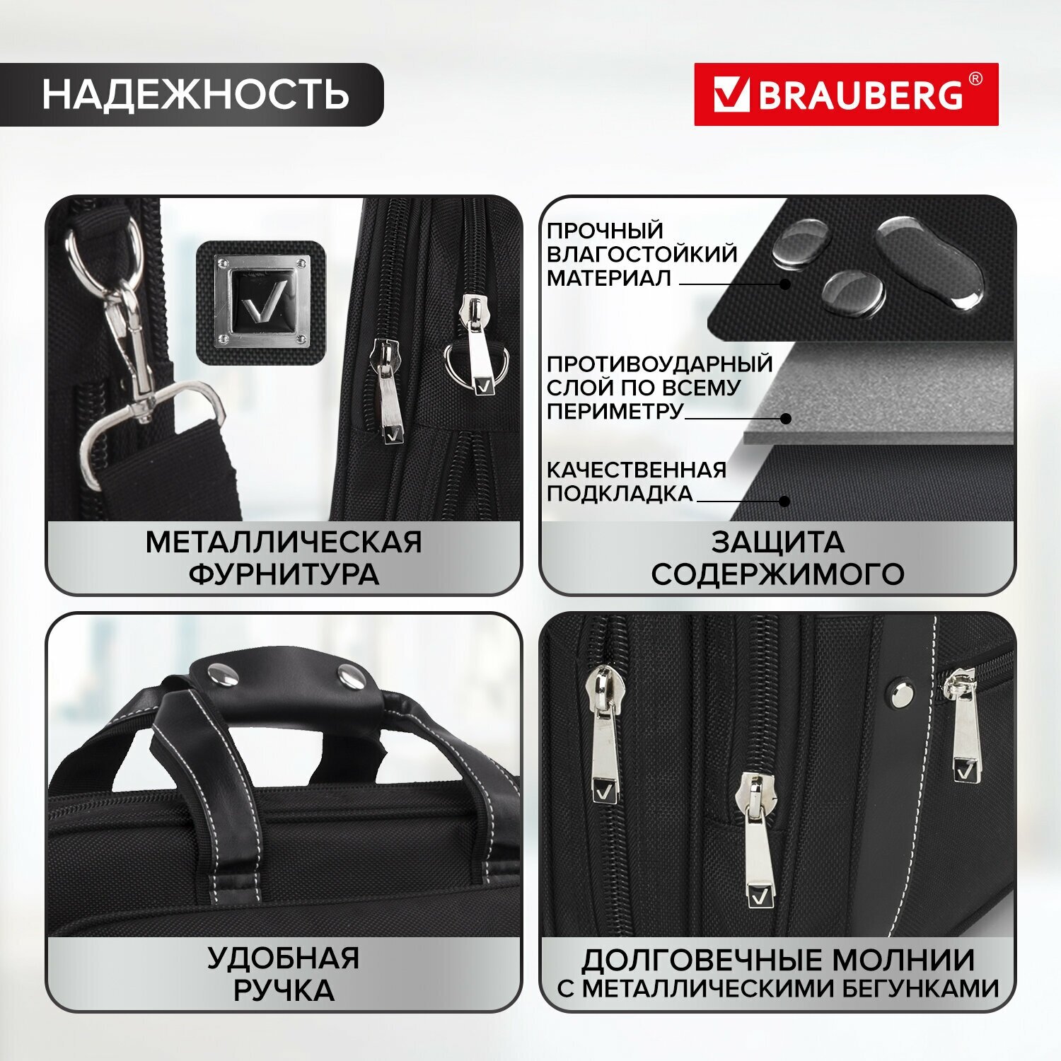 Сумка портфель BRAUBERG CARBON с отделением для ноутбука 15-16", 2 отделения, черная, 31х41х13 см, 240509
