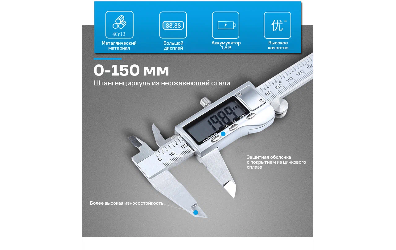 Цифровой штангенциркуль с LCD-дисплеем PROSTORMER PTHT457 150 мм, 0.01 мм интересное: