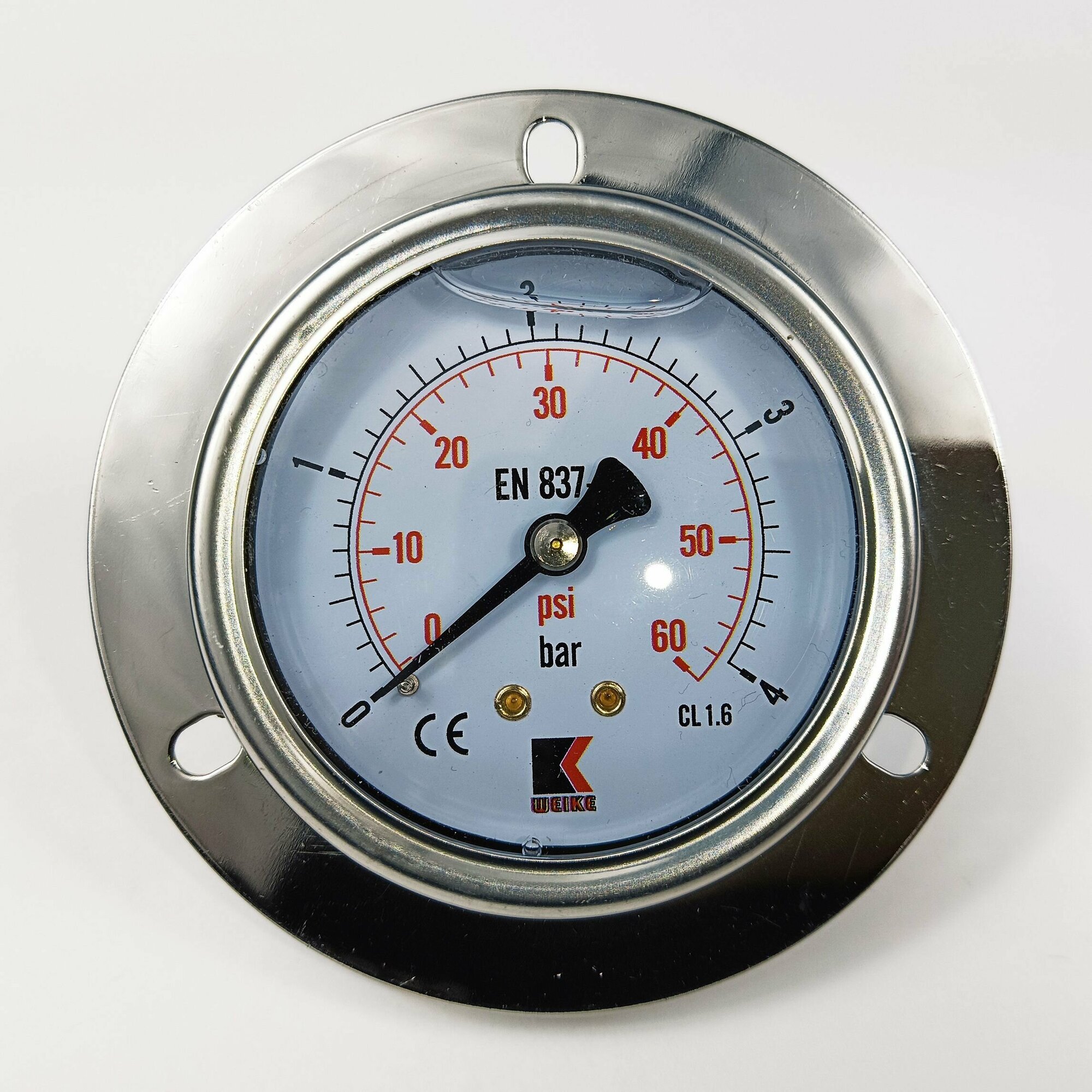 Манометр гидравлический на 4 бар (60 psi), 63 мм, G 1/4" фланцевый, виброустойчивый - глицериновый