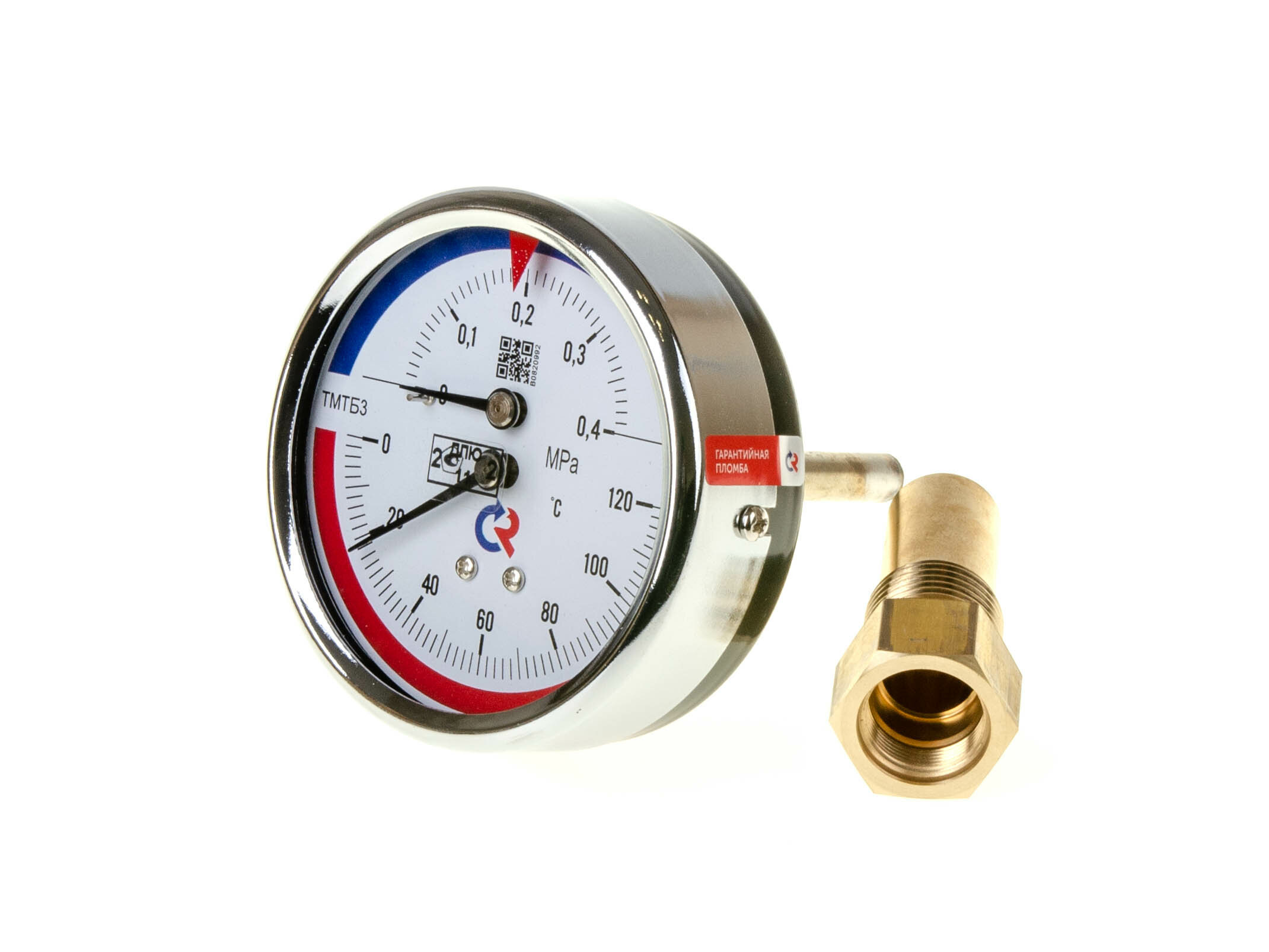 Купить Росма Термоманометр аксиальный Dn 80 мм 1/2", 120°C, 0,4 MPa (4 бар) с отсечным клапаном 46 мм