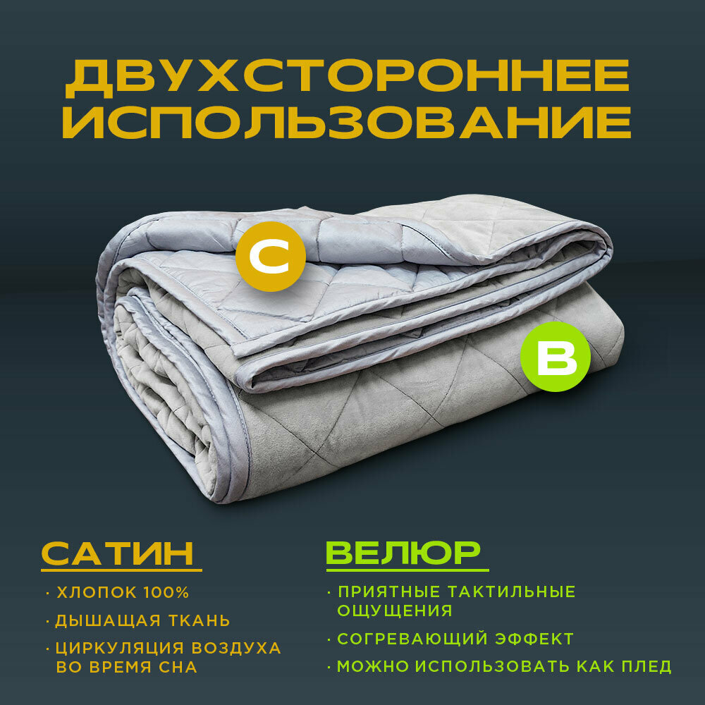 Утяжеленное одеяло WELLINAGRAVITY 172x205 см. серое велюр 8 кг. / Сенсорное одеяло WELLINAGRAVITY 172 x 205 см. 8 кг. (цвет серый, ткань велюр) интересное: