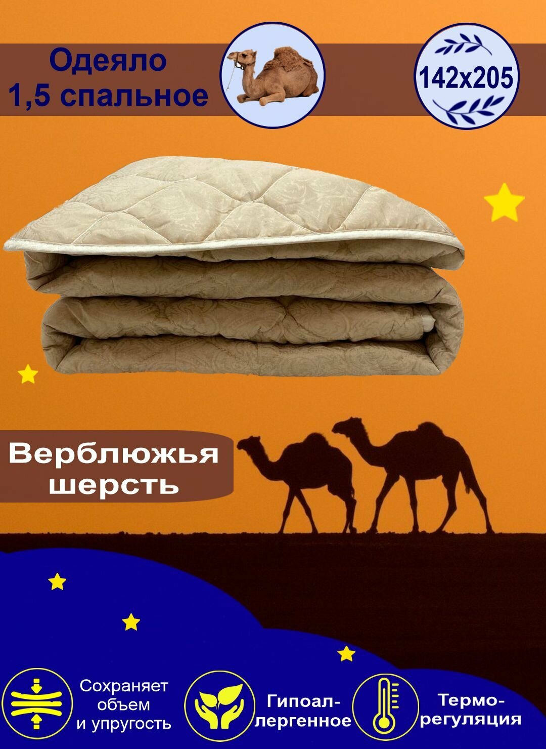 Одеяло облегченное "Верблюжья шерсть" микрофибра 1,5 спальное интересное: