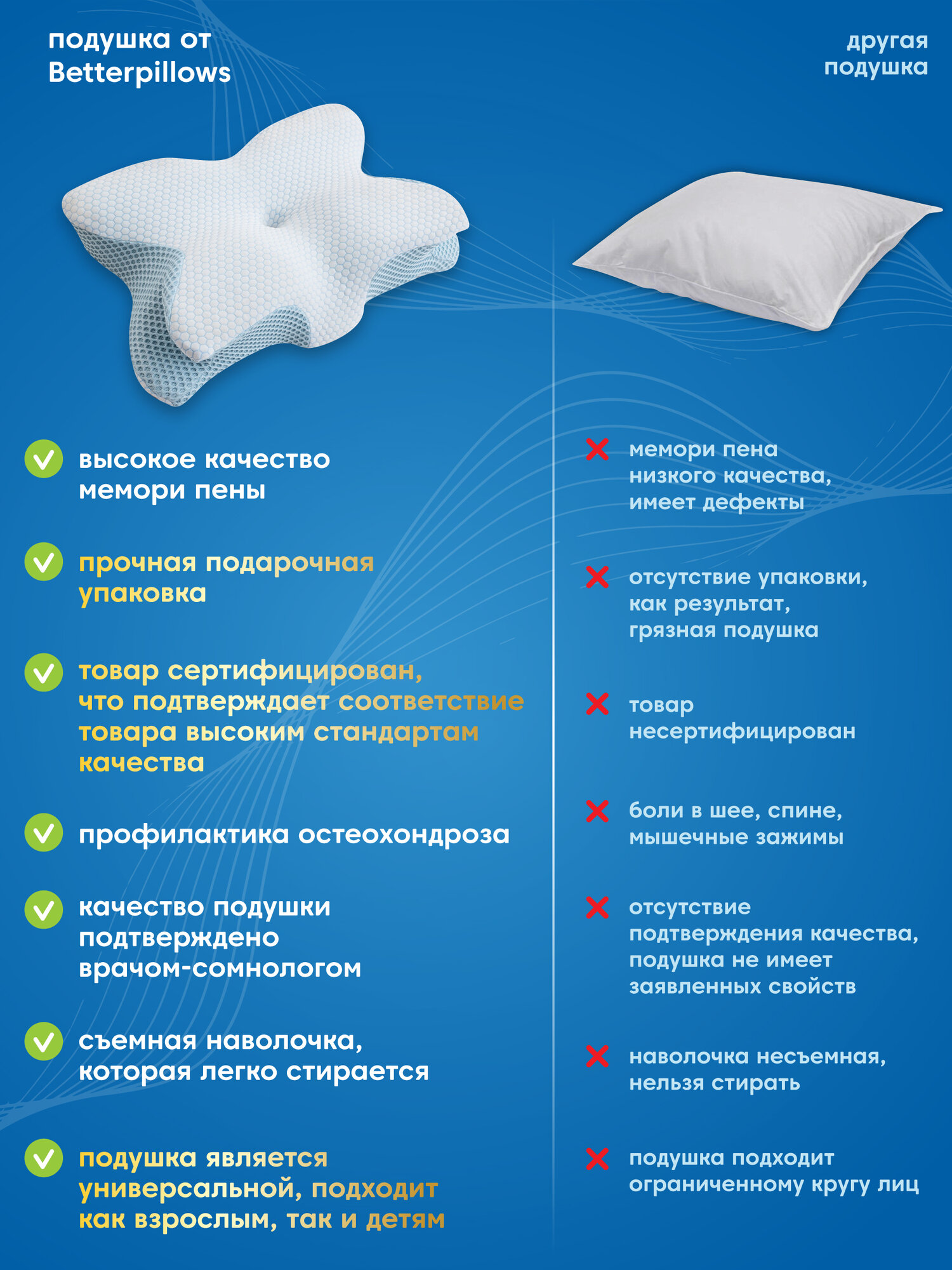 Ортопедическая подушка для сна Betterpillows "ICE COMFORT", Memory Foam, охлаждающий эффект 40х66
