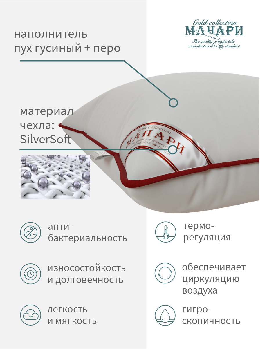 | Дополнительная информация | Настоящая натуральная пухо перовая подушка с натуральным наперником |