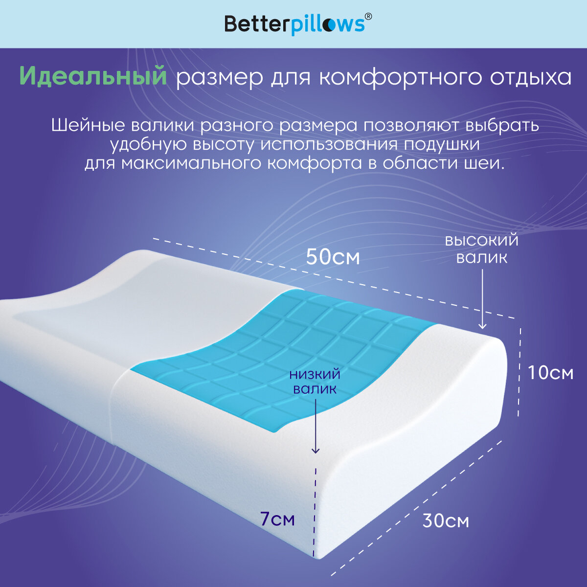 Подушка Betterpillows "EXTRA COOL WAVE", ортопедическая, гелевая, 68x40x11 см