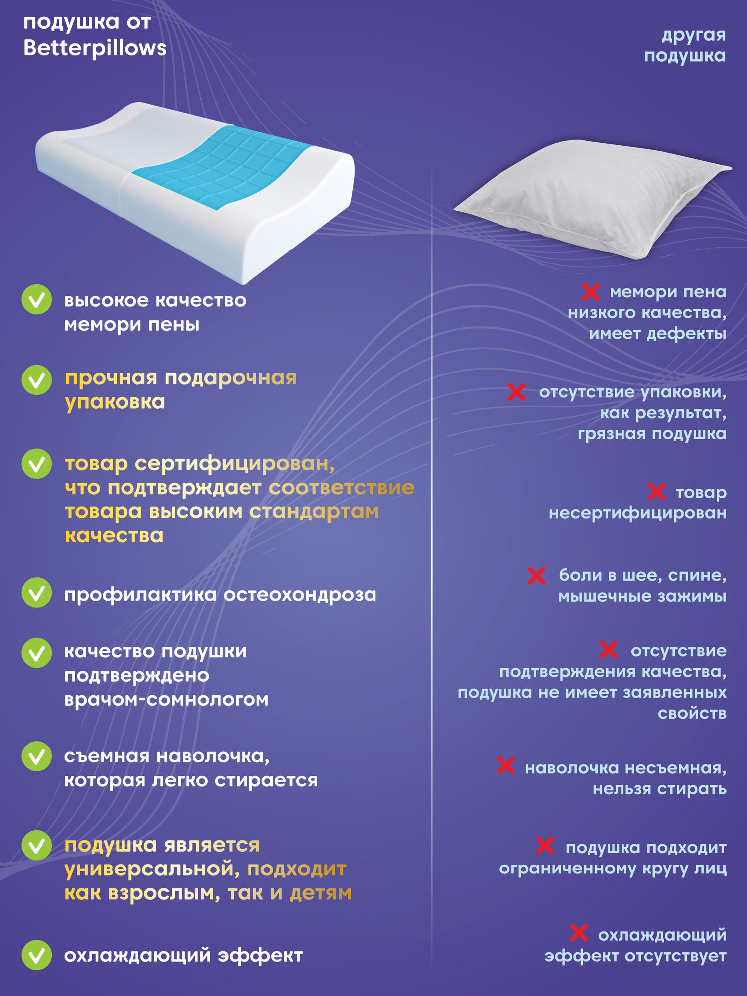 Ортопедическая подушка для сна Betterpillows "EXTRA COOL WAVE" гелевая с охлаждающим и массажным эффектом68x40x11 см