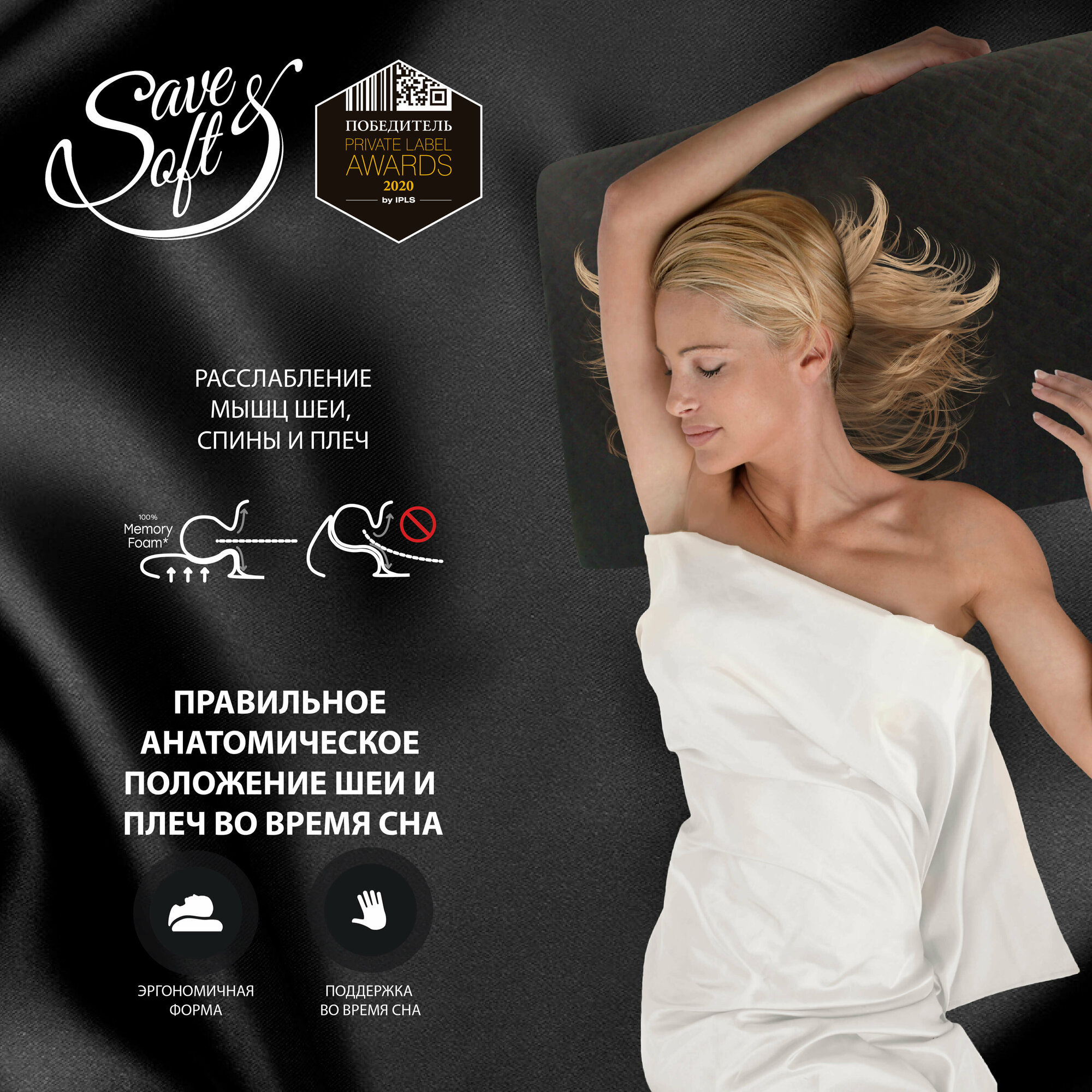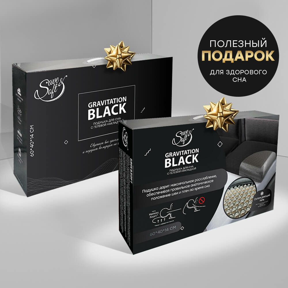 Анатомическая Подушка Save&Soft gravitation black для сна с гелевой накладкой черный 60*40*14 коробк интересное: