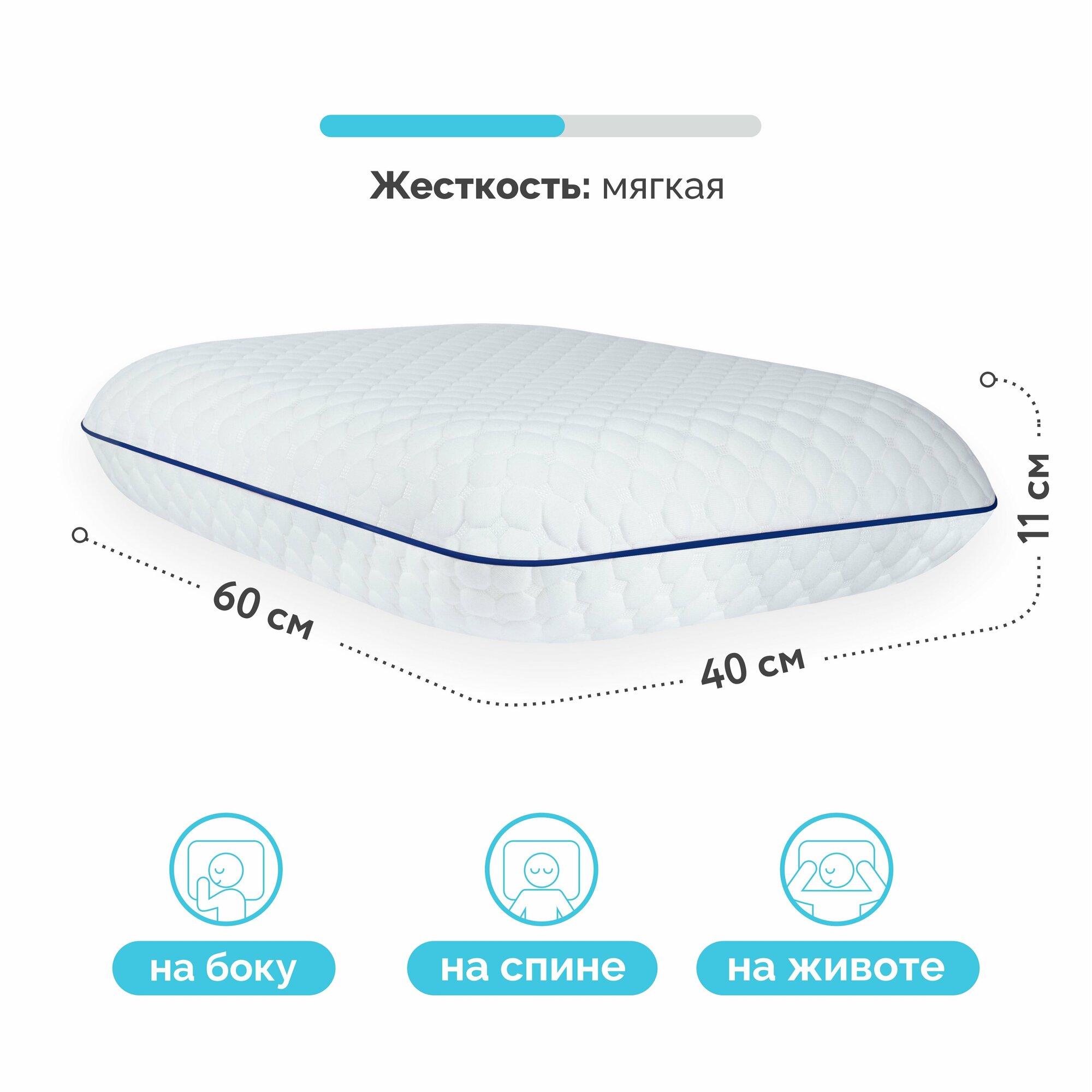 Ортопедическая подушка с эффектом памяти для сна SleepUp Soft M 59х39х11 см интересное: