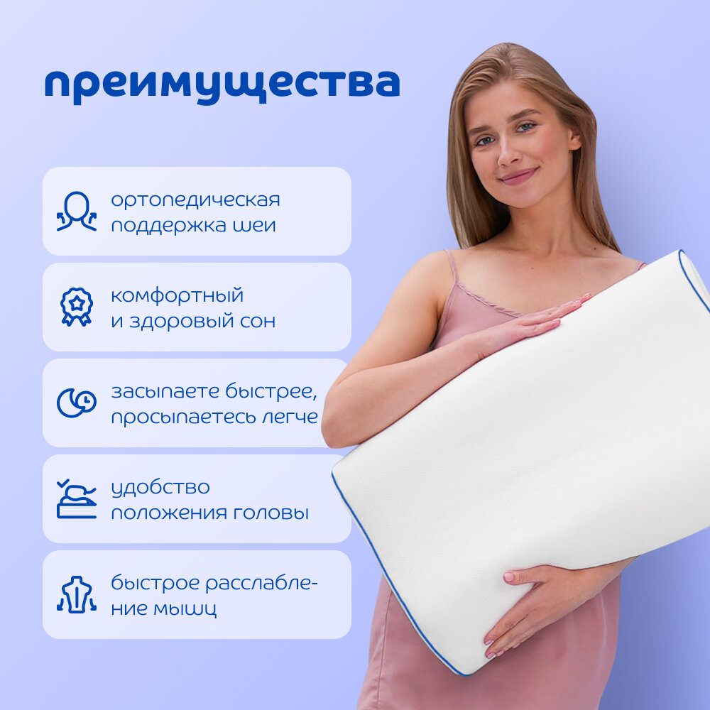 Ортопедическая подушка 40х60 для сна с эффектом памяти с валиками Blue Sleep Memory интересное: