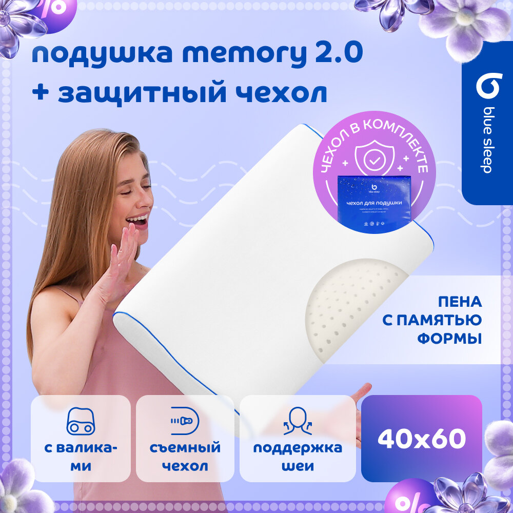 Подушка с валиками 40х60 Blue Sleep Memory 2.0 + Защитный чехол Blue Sleep 50х70 интересное:
