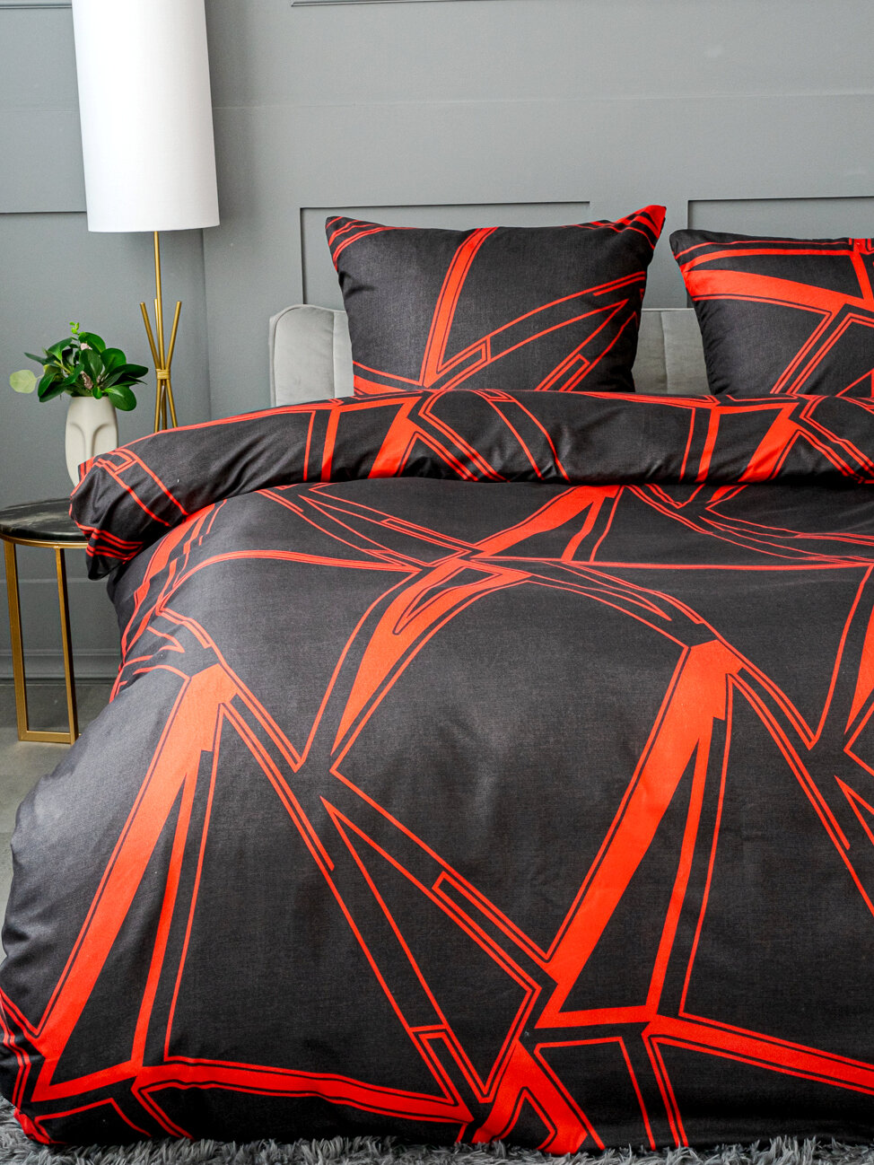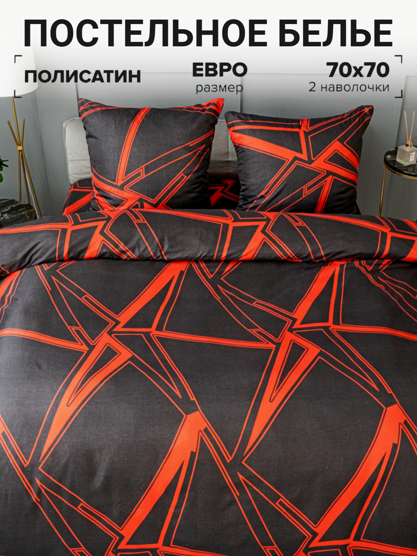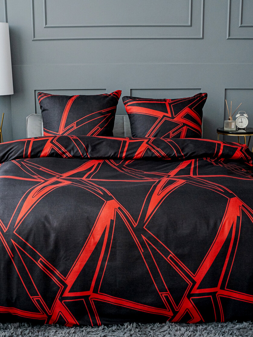 Купить Постельное белье евро Павлина Разлом черно-красный, Полисатин, наволочки 70x70
