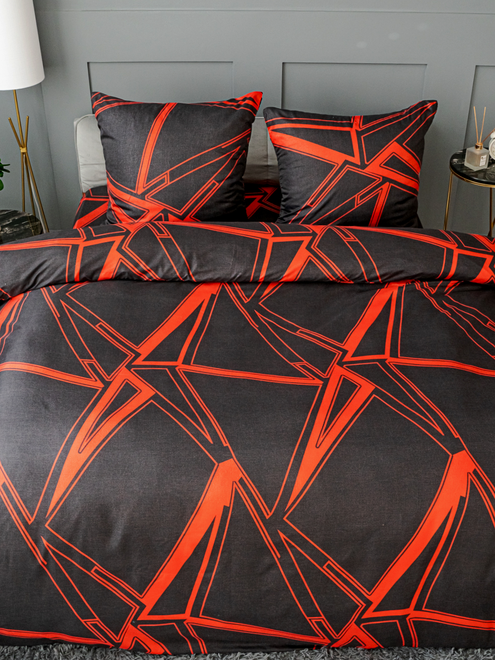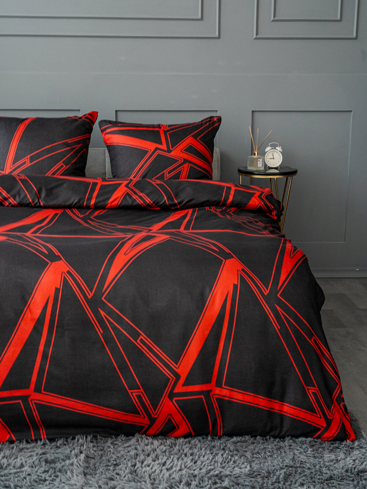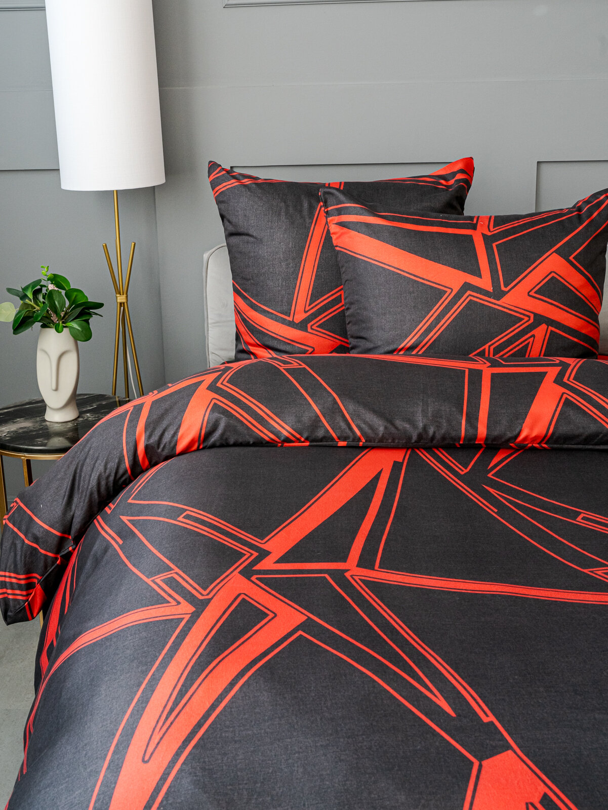 Купить Постельное белье евро Павлина Разлом черно-красный, Полисатин, наволочки 70x70