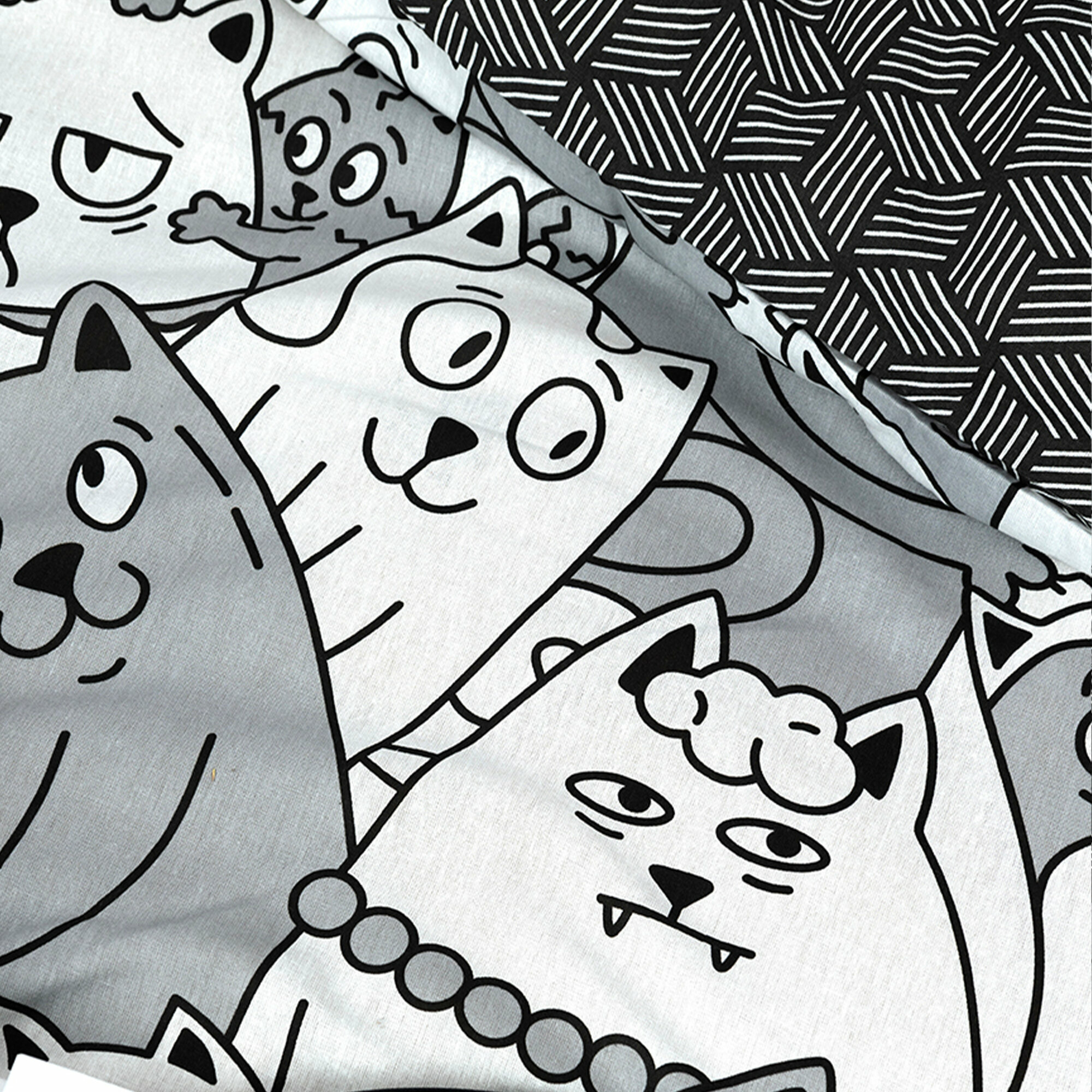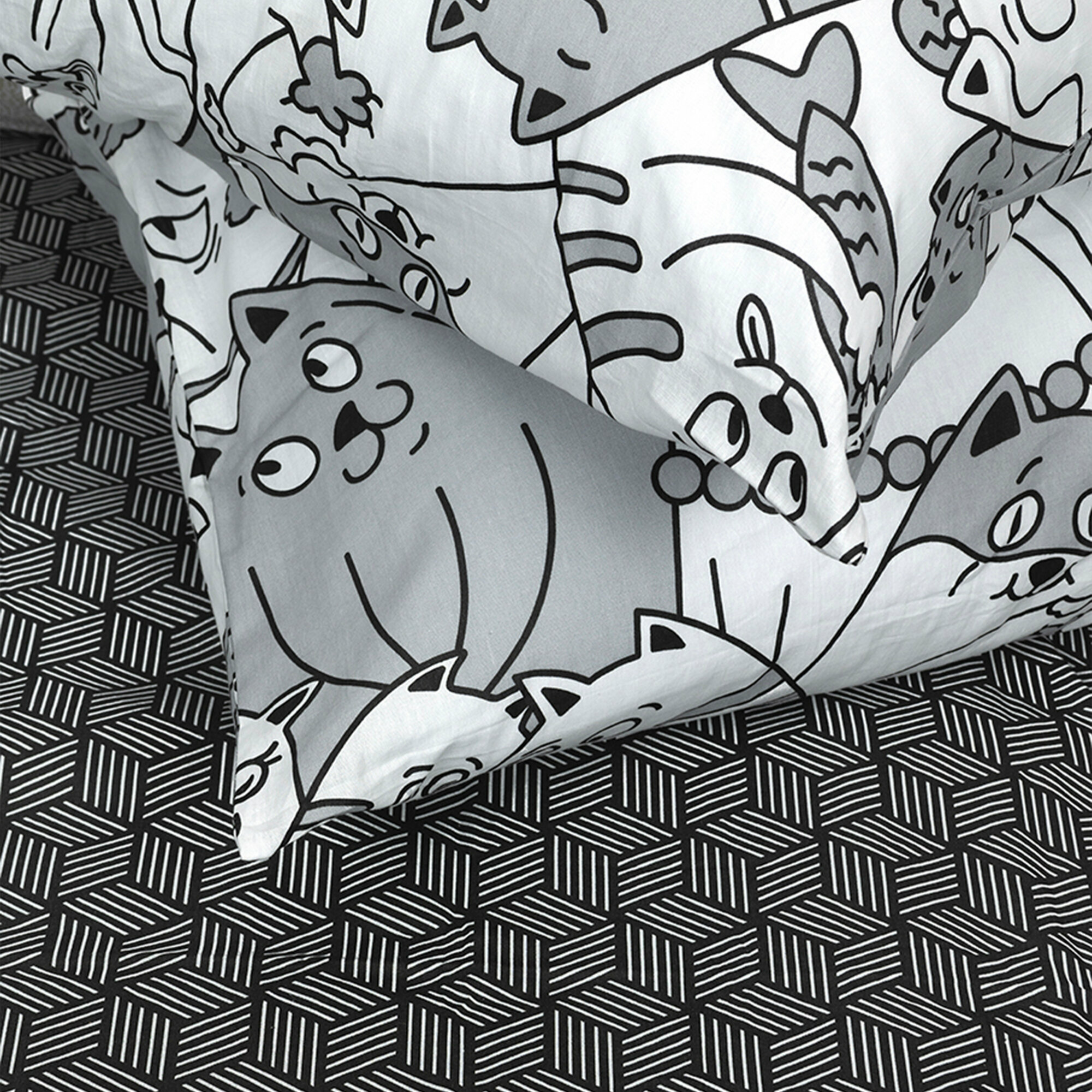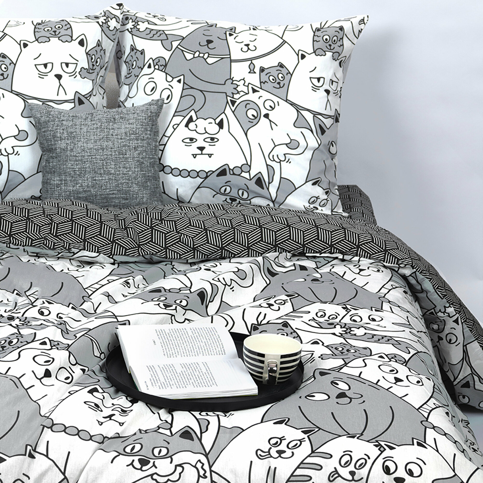Постельное белье 1,5 спальное / Комплект постельного белья 1,5-спальный Galtex Котовасия, Фиджи черный интересное: