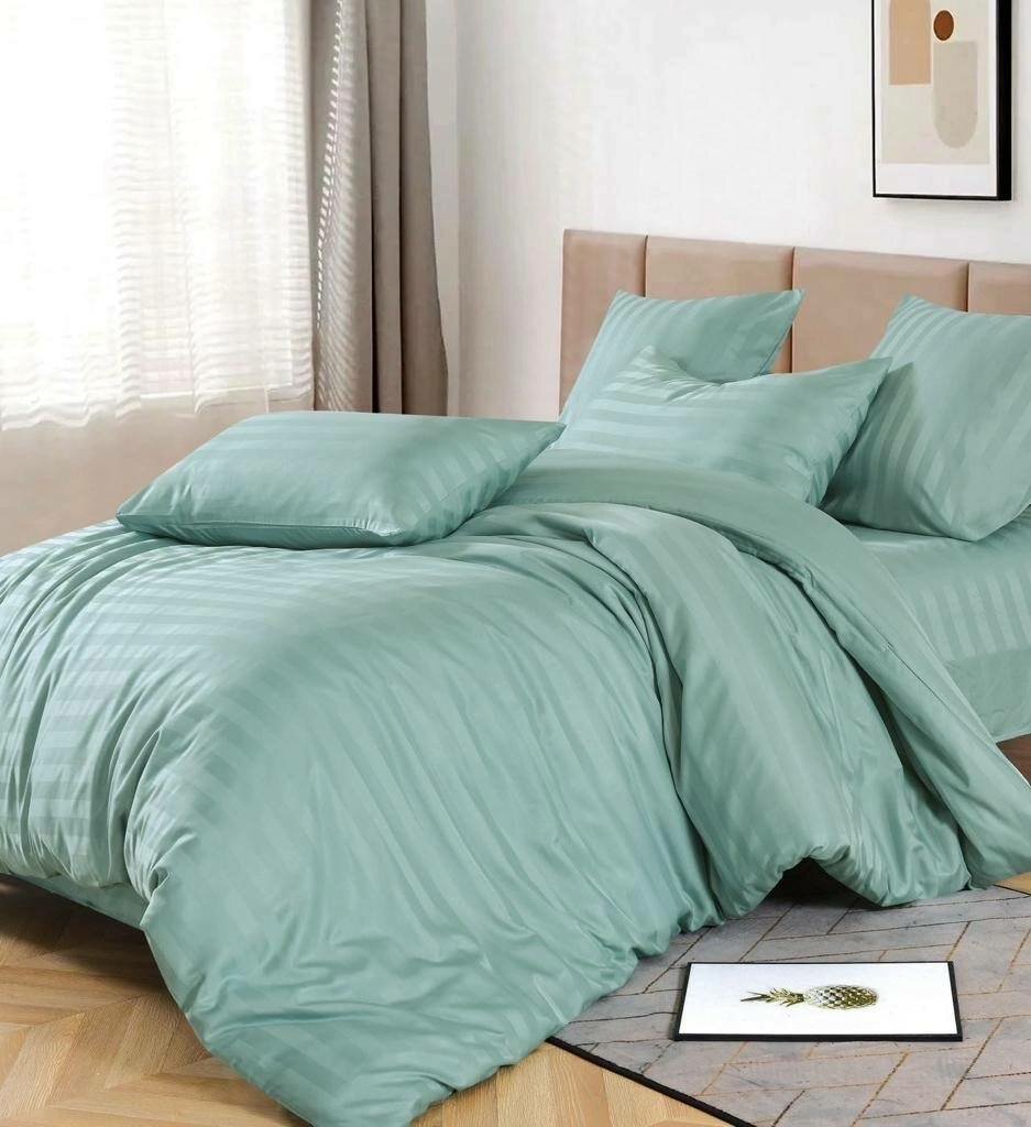 Комплект постельного белья Winni 2 спальный, Страйп-сатин, Зеленый