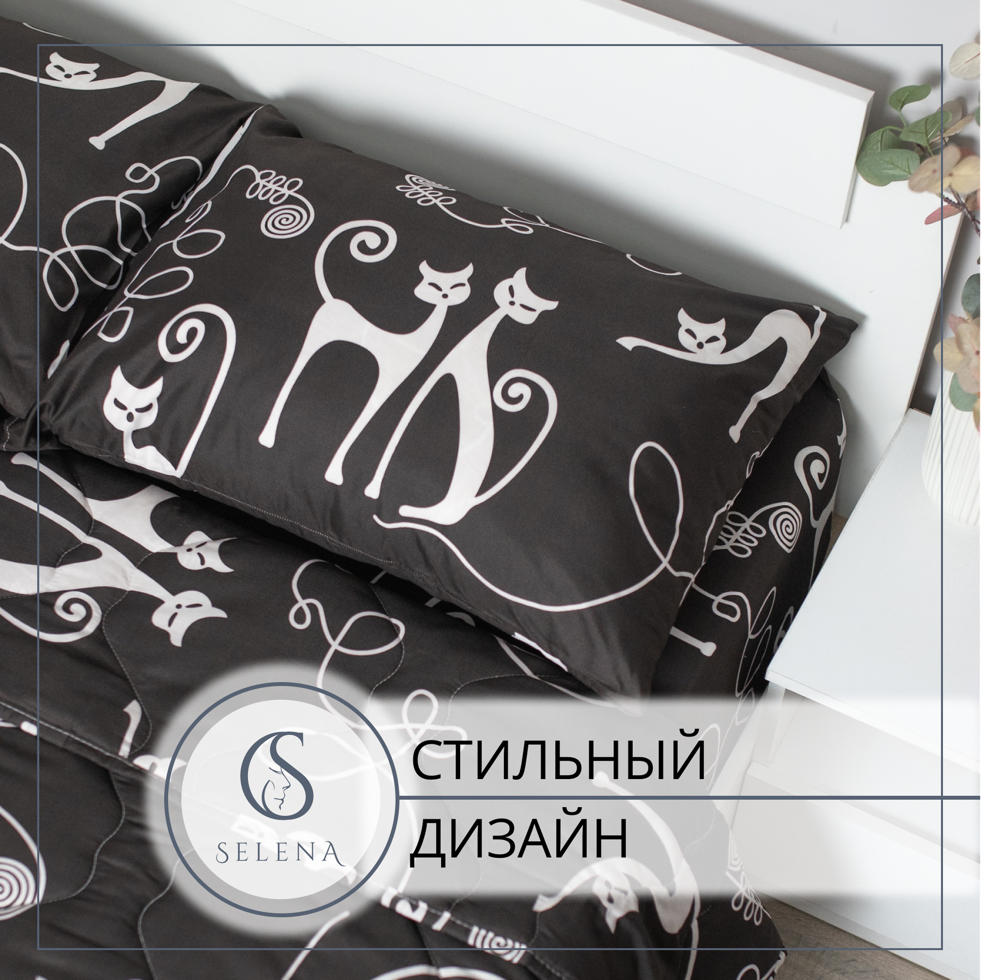 Комплект постельного белья с одеялом SELENA Телия евро из хлопка, полисатин, наволочка 2 шт