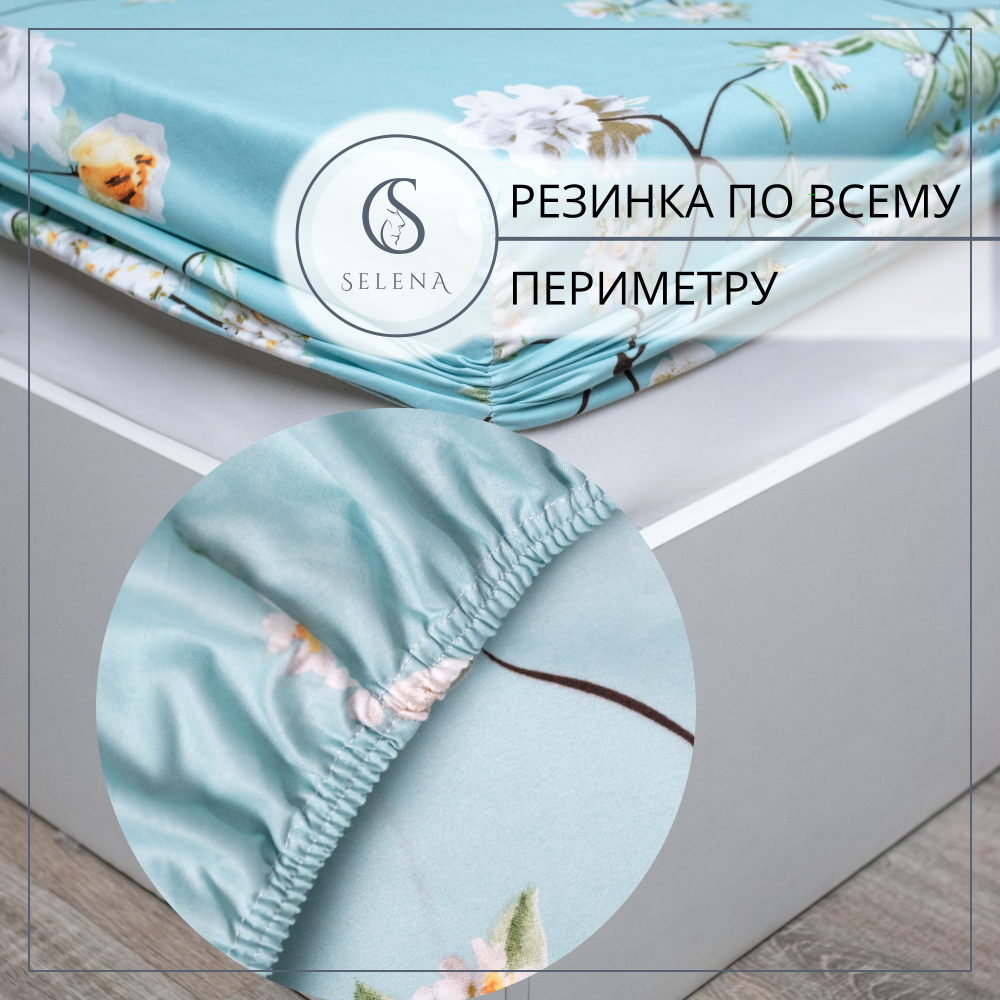 Комплект постельного белья с одеялом SELENA Блоссом евро из хлопка, полисатин, наволочка 2 шт