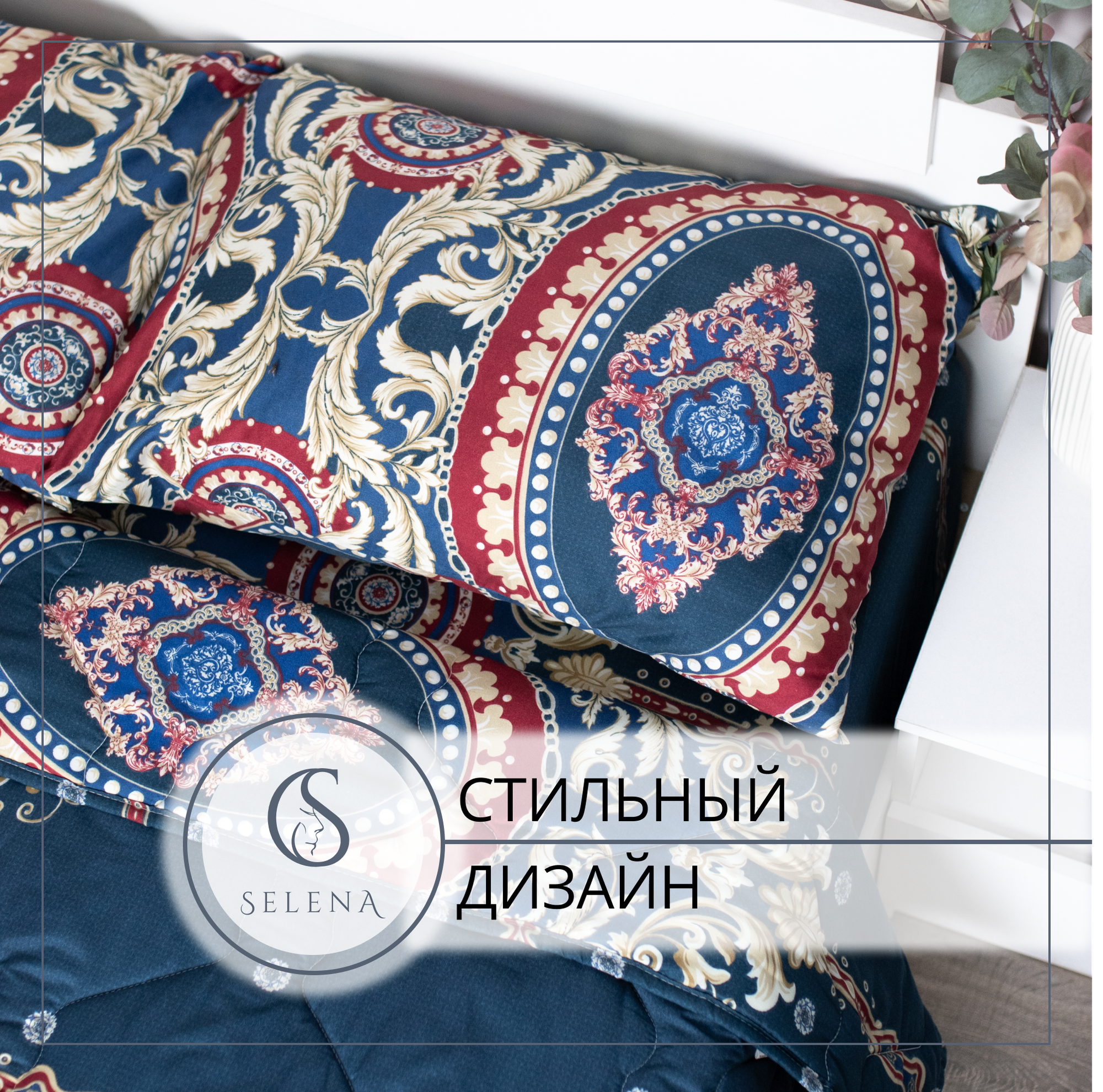 Комплект постельного белья с одеялом SELENA Венера евро из хлопка, полисатин, наволочка 2 шт