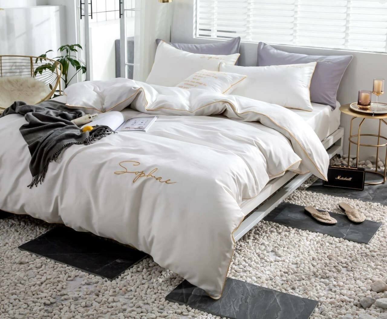 Комплект постельного белья Евро Winni Хлопок/Жатка простыня на резинке, Белый интересное: