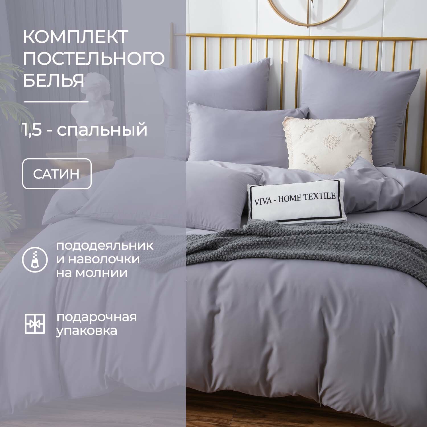 Комплект постельного белья ситрейд 1,5 спальный однотонный светло-серый, Сатин, наволочки 50x70 2 шт.