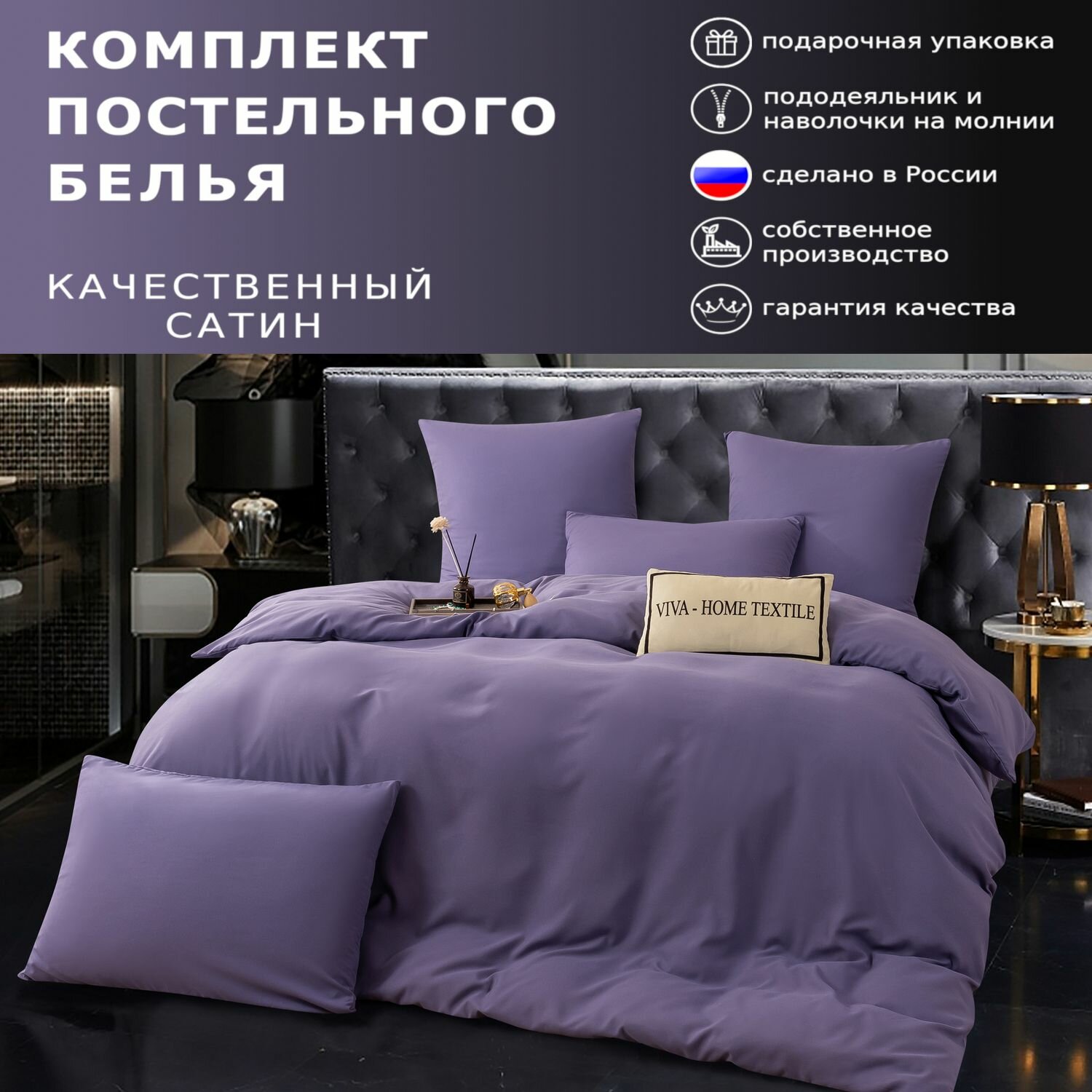 Комплект постельного белья ситрейд 2 спальный однотонный фиолетовый, Сатин, наволочки 70x70 2 шт.