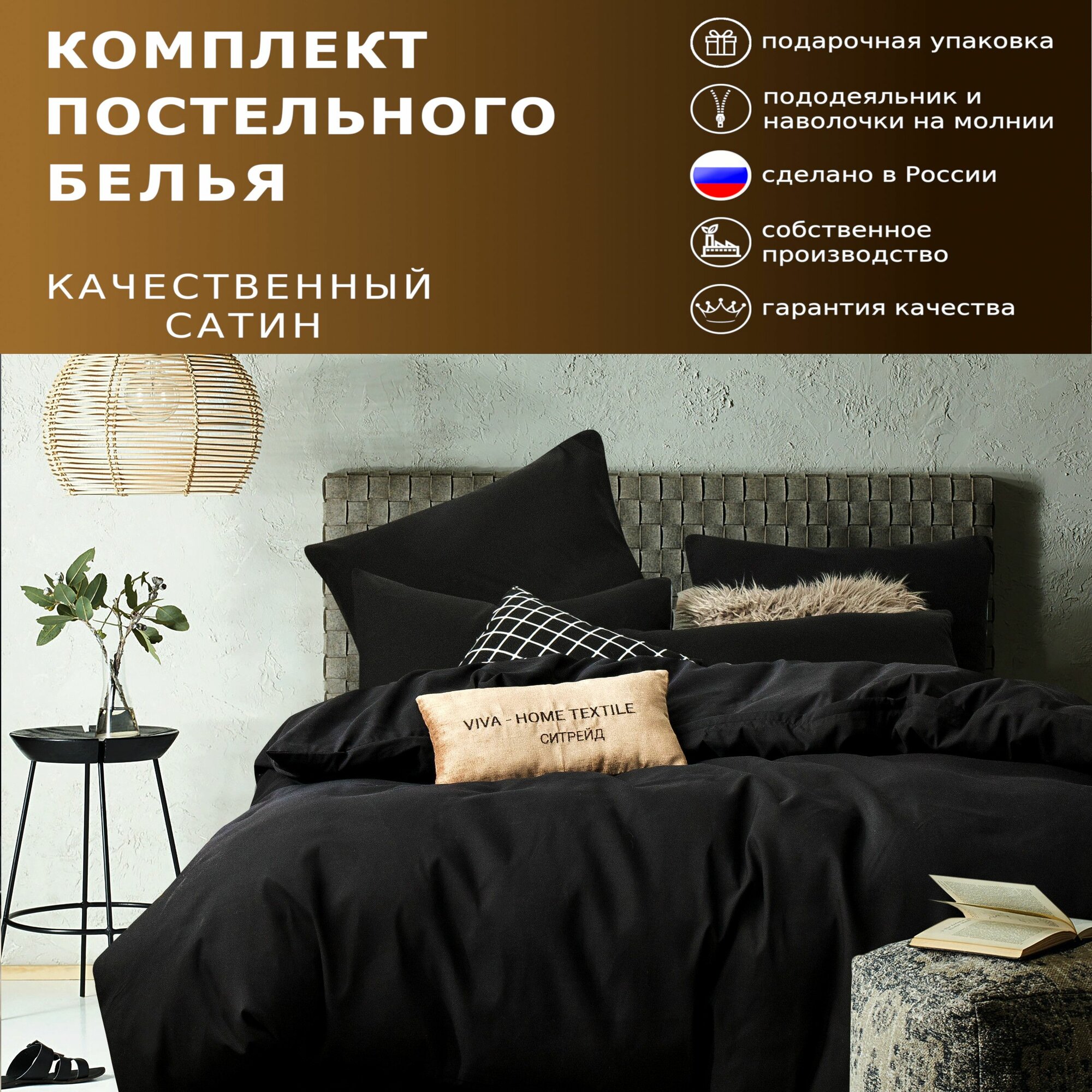 Комплект постельного белья ситрейд Евро чёрный, Сатин, наволочки 50x70, 70x70 по 2 шт.