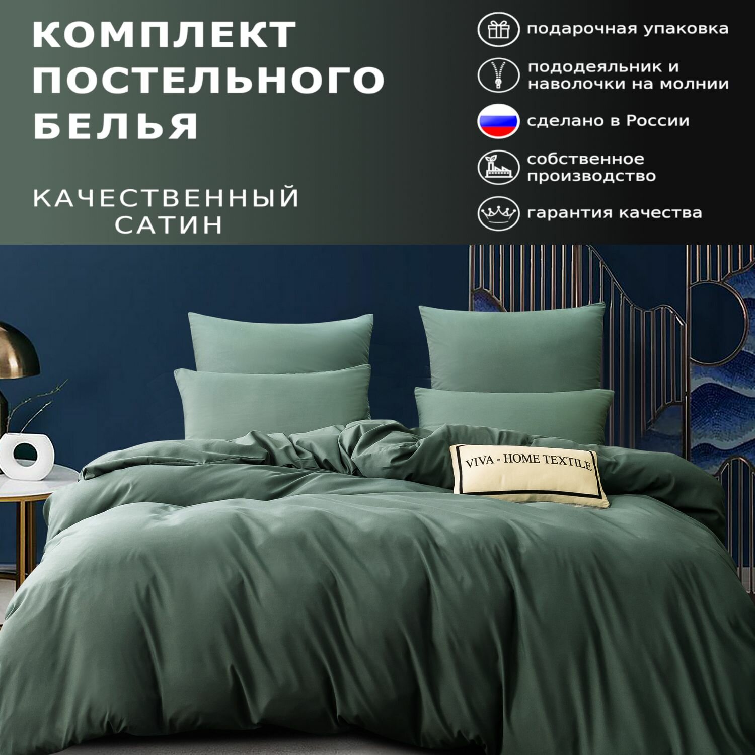 Комплект постельного белья ситрейд 1,5 спальный однотонный тёмно-зелёный, Сатин, наволочки 50x70 2 шт.