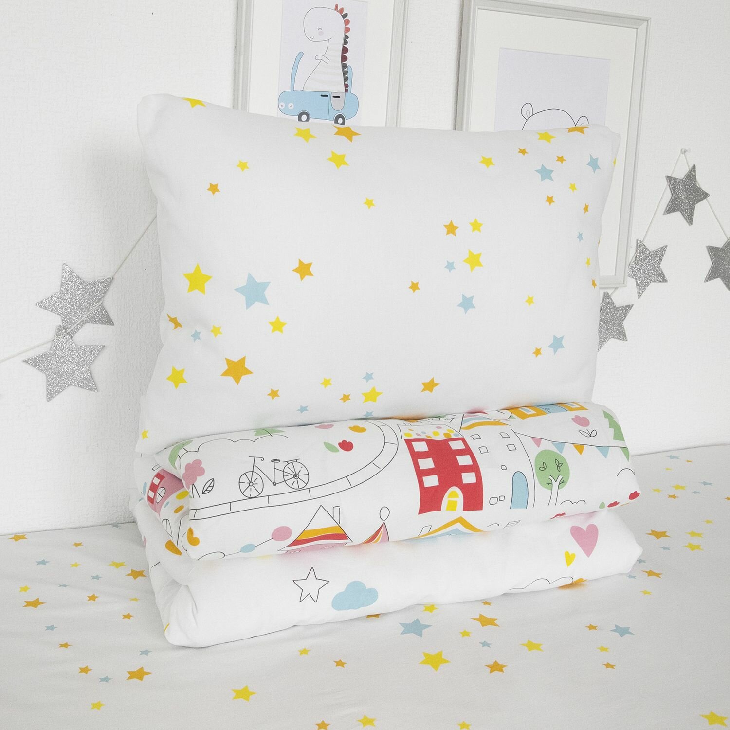 СохранитьПостельное белье детское 1 спальное 160х80 Поплин "Волшебный город" Комплект постельного белья для детей интересное: