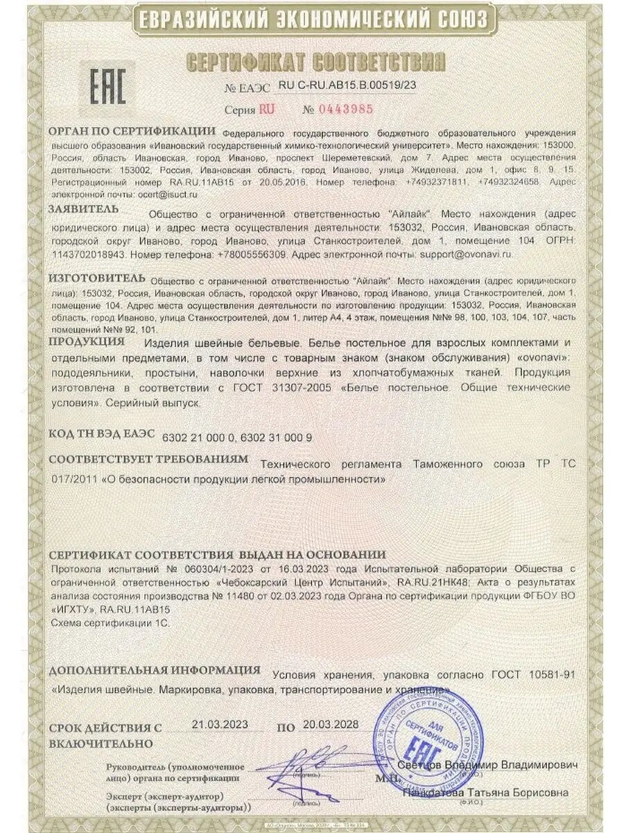 | Плотность ткани | 125 г/м² |
