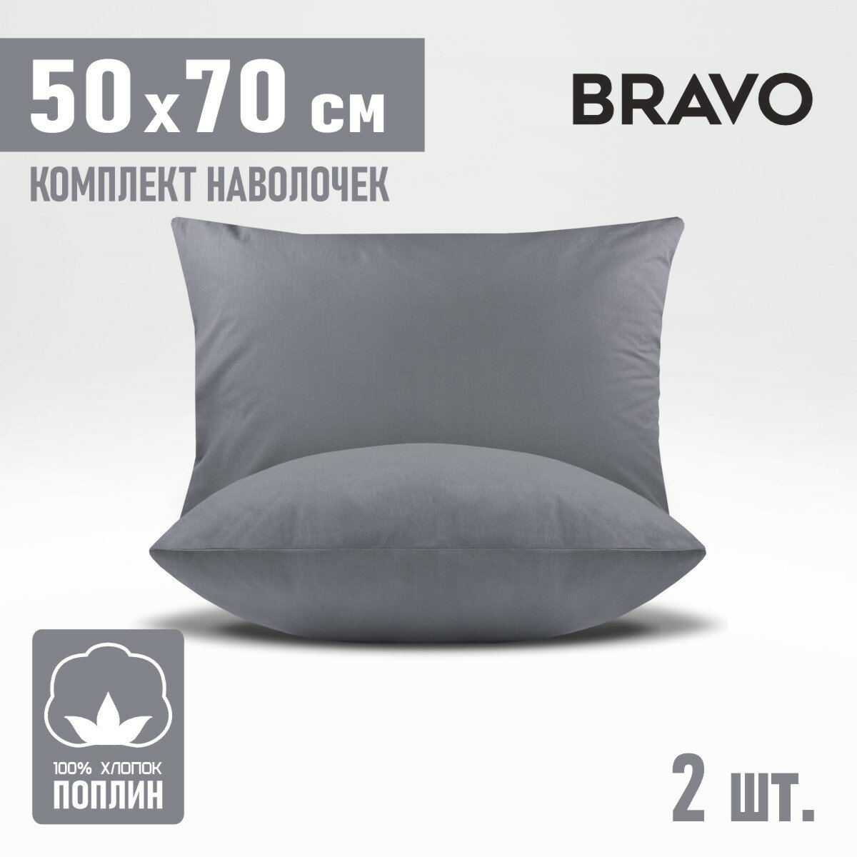 Купить Комплект наволочек 50x70 2 шт Bravo серый, хлопок, поплин, с клапаном, набор наволочек 2 шт