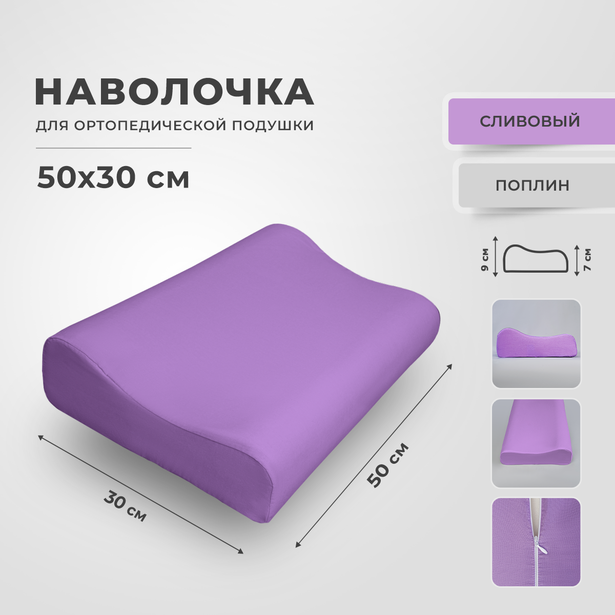 Купить Наволочка для ортопедической подушки 30х50 из поплина сливовый