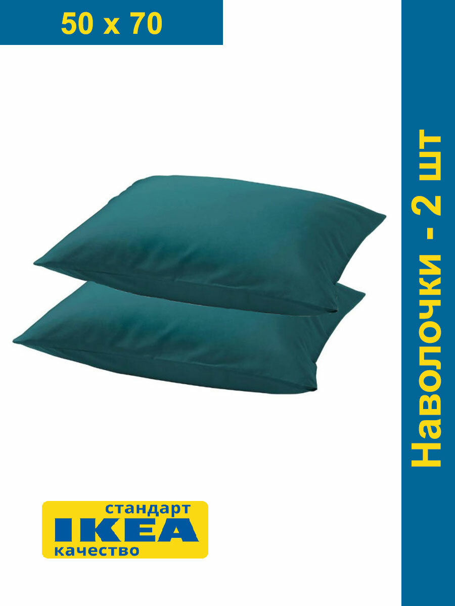 Наволочки 50х70 - 2 шт лютесмио (икеа LUKTJASMIN) темно-зеленый сатин, лиоцелл KL-30433686 интересное: