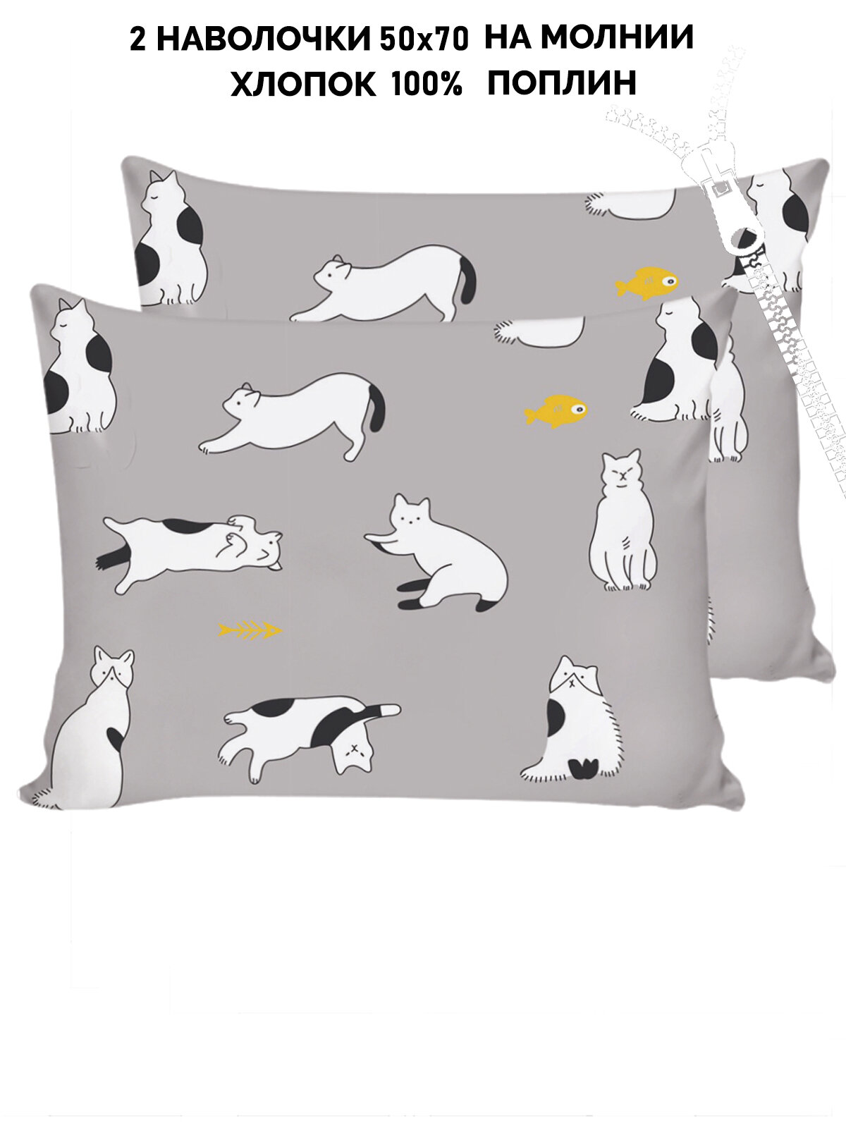 Наволочка 2шт на молнии 70х70 см Сказка "Kitties", ткань перкаль, 100% хлопок