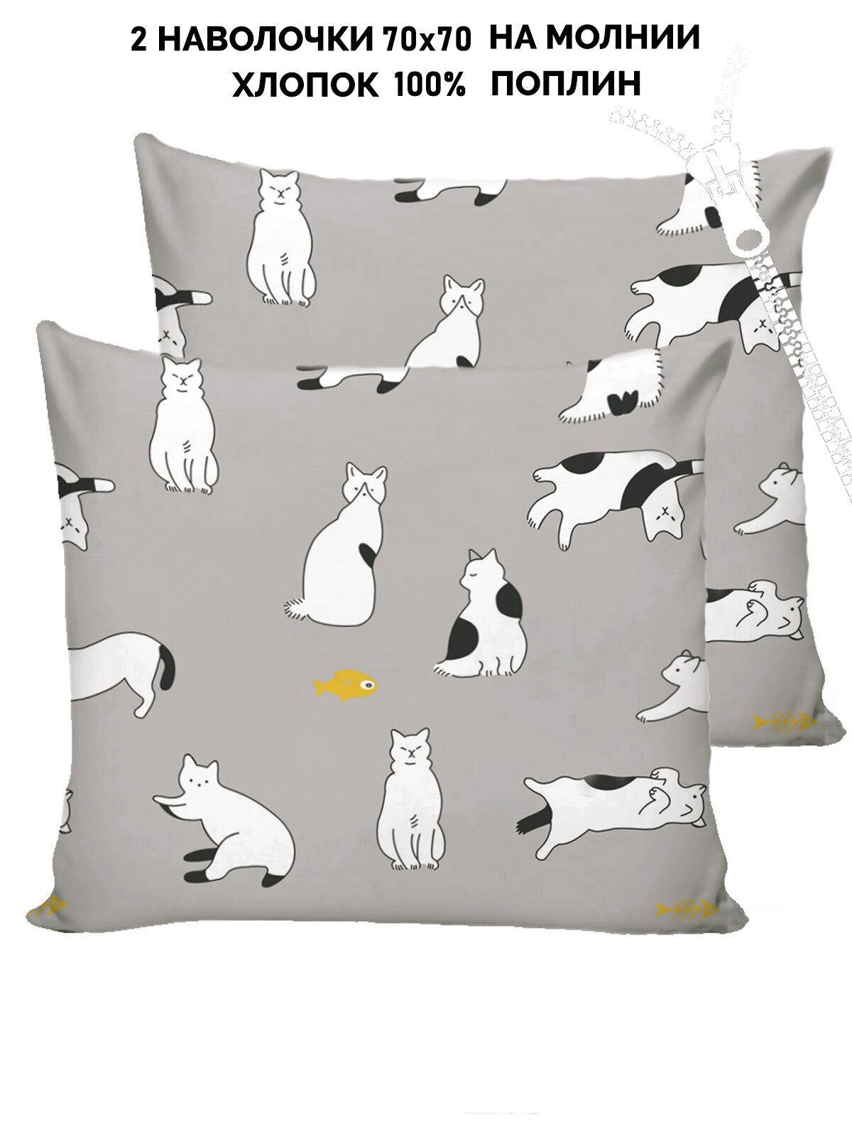 Наволочка 2шт на молнии 70х70 см Сказка "Kitties", ткань перкаль, 100% хлопок