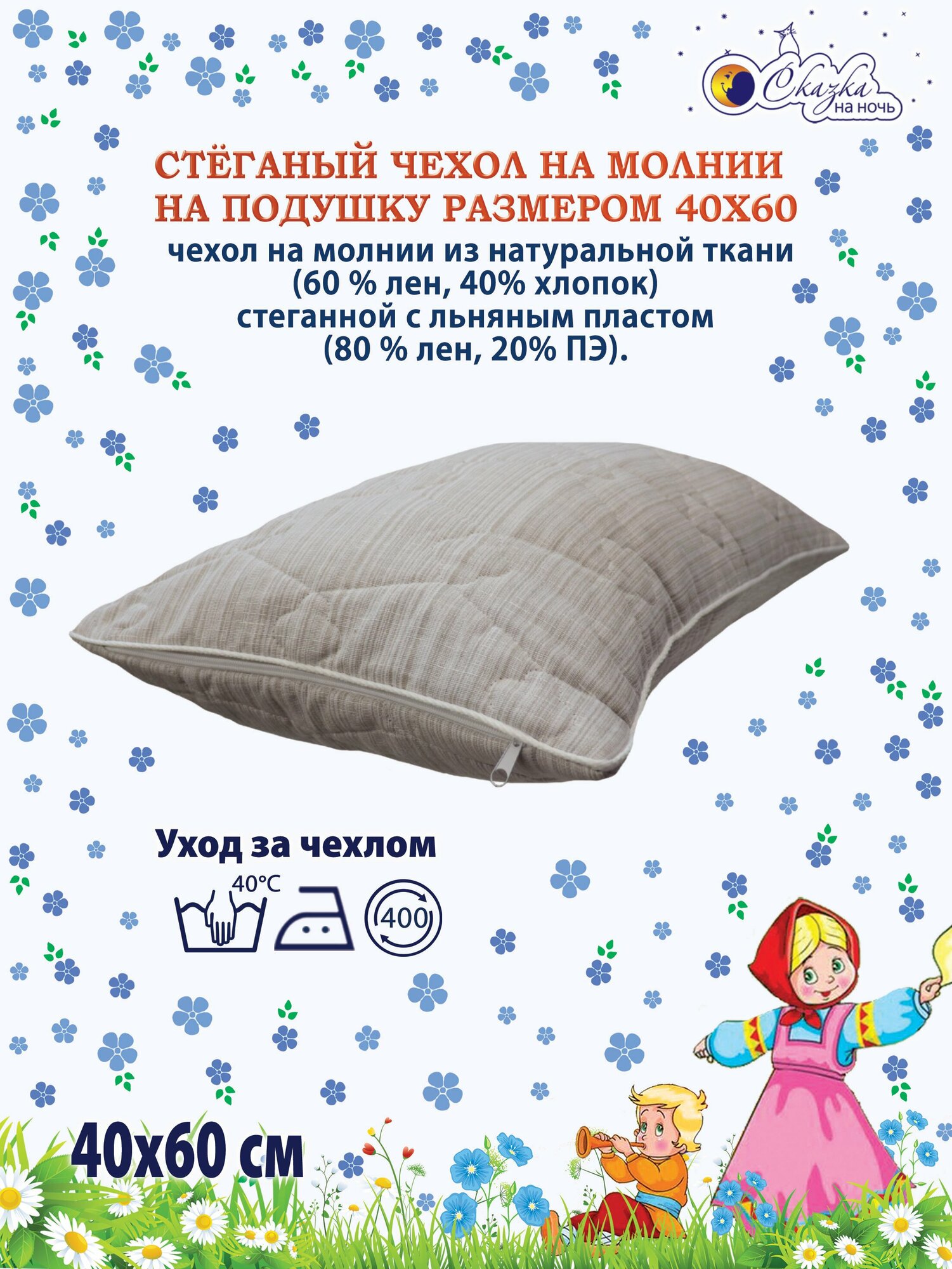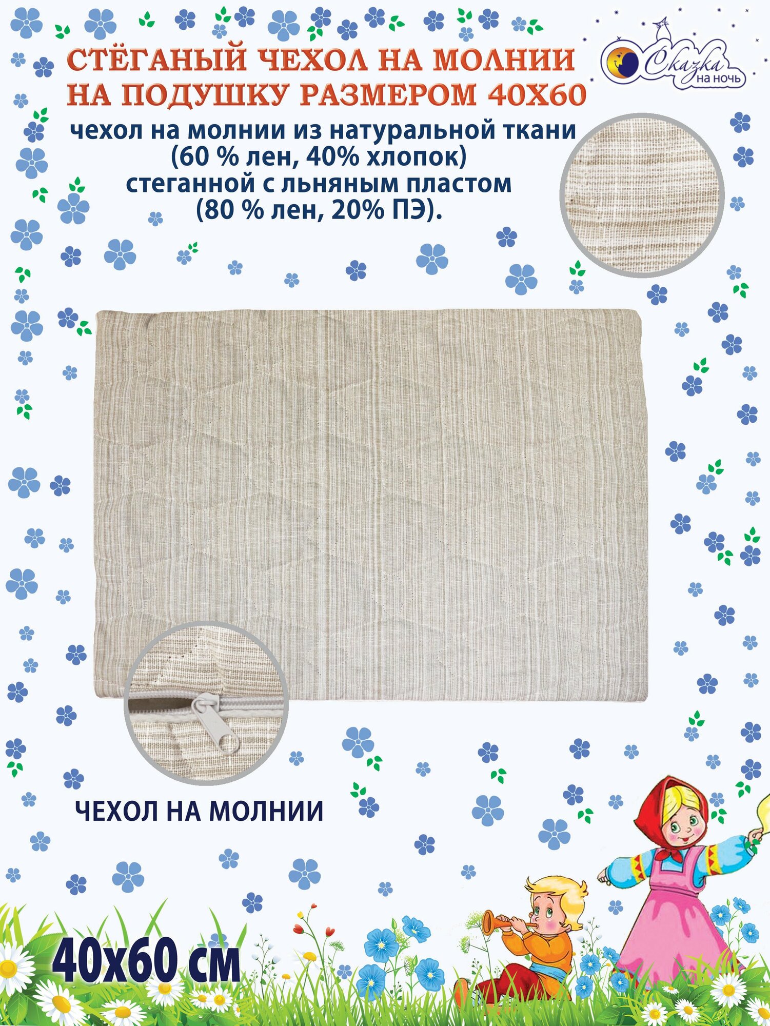 Наволочка 40х60 лен (льняная) стеганая (наперник, чехол на подушку) на молнии интересное:
