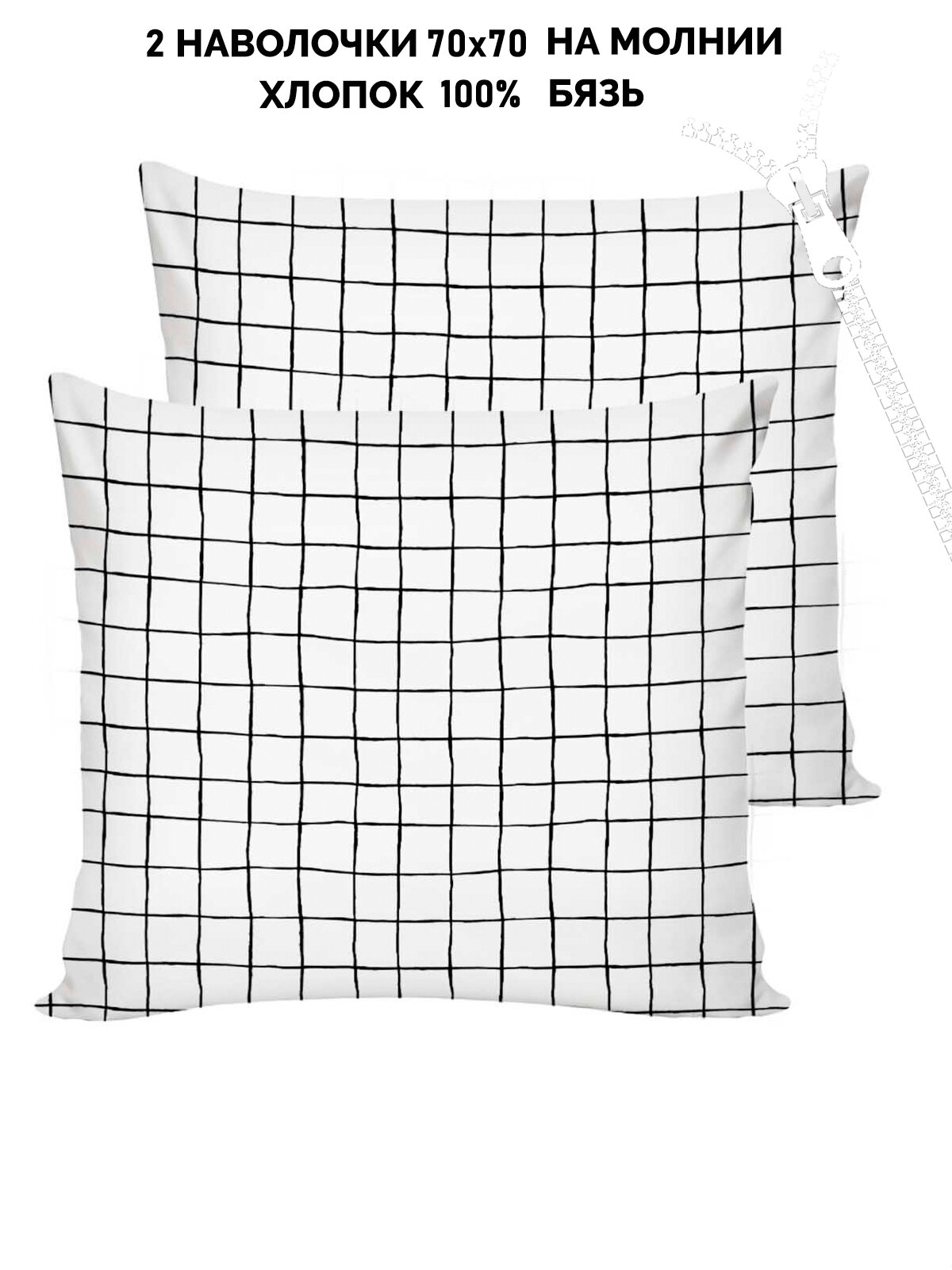 Наволочка 2шт Кот Коттон "Бежевая клеточка" 70х70 см