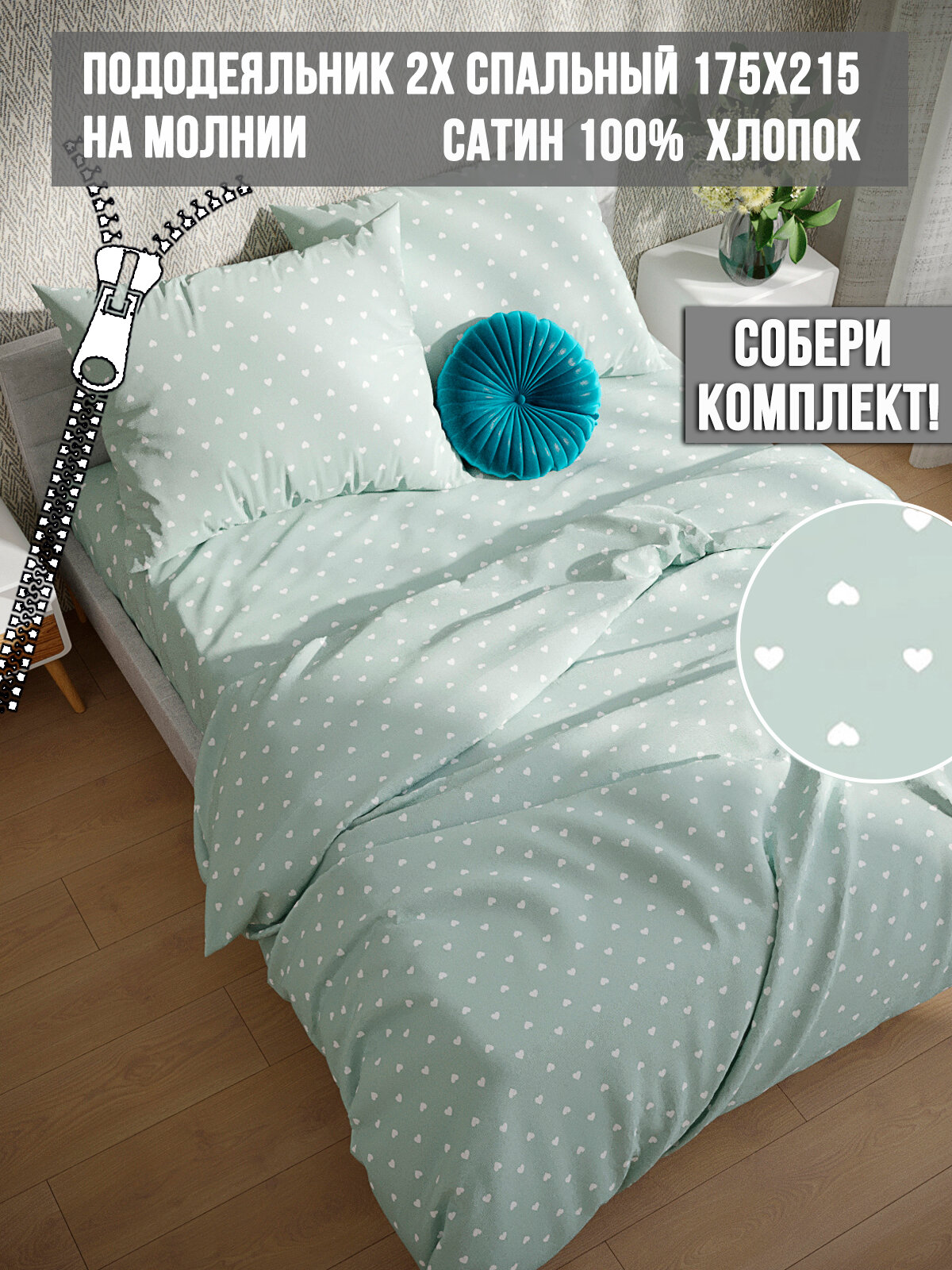 Пододеяльник на молнии сатин Milky Garden "Nicol" 2-сп 175х215 см интересное: