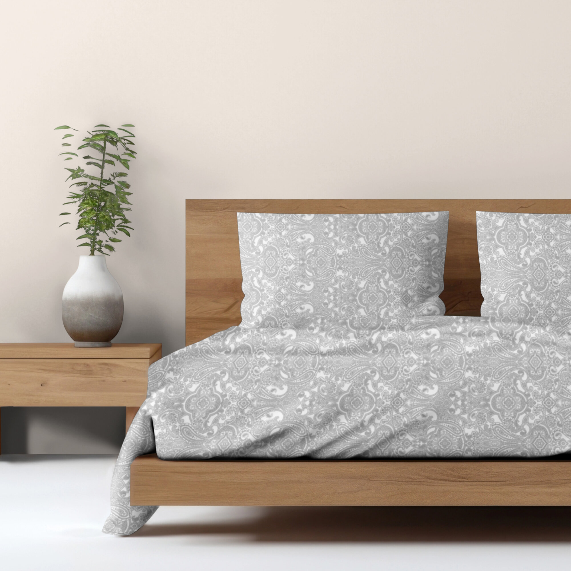 Пододеяльник Ventura Life, 200х220 см, сатин, хлопок 100%, Серый пейсли интересное: