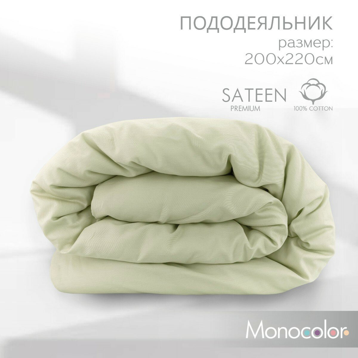 СохранитьПододеяльник Евро размер 200*220 см Monocolor сатин хлопок /цвет фисташковый интересное: