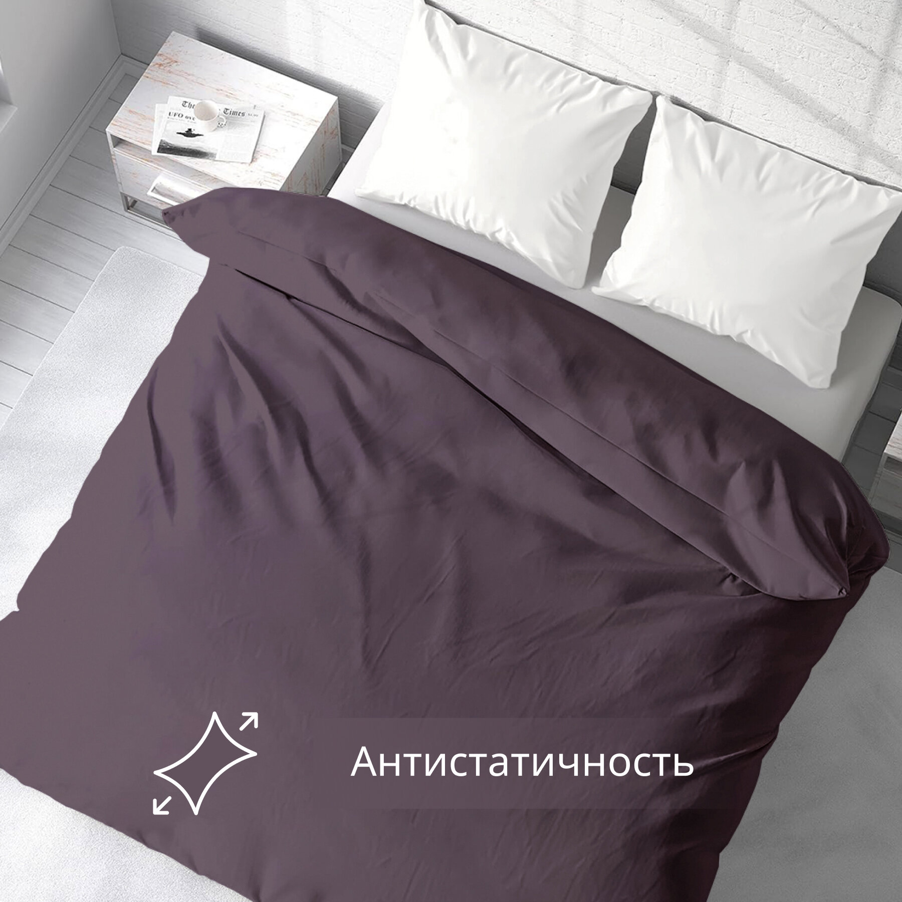 Пододеяльник 2 спальный размер 175*220 см Monocolor сатин хлопок /цвет лиловый