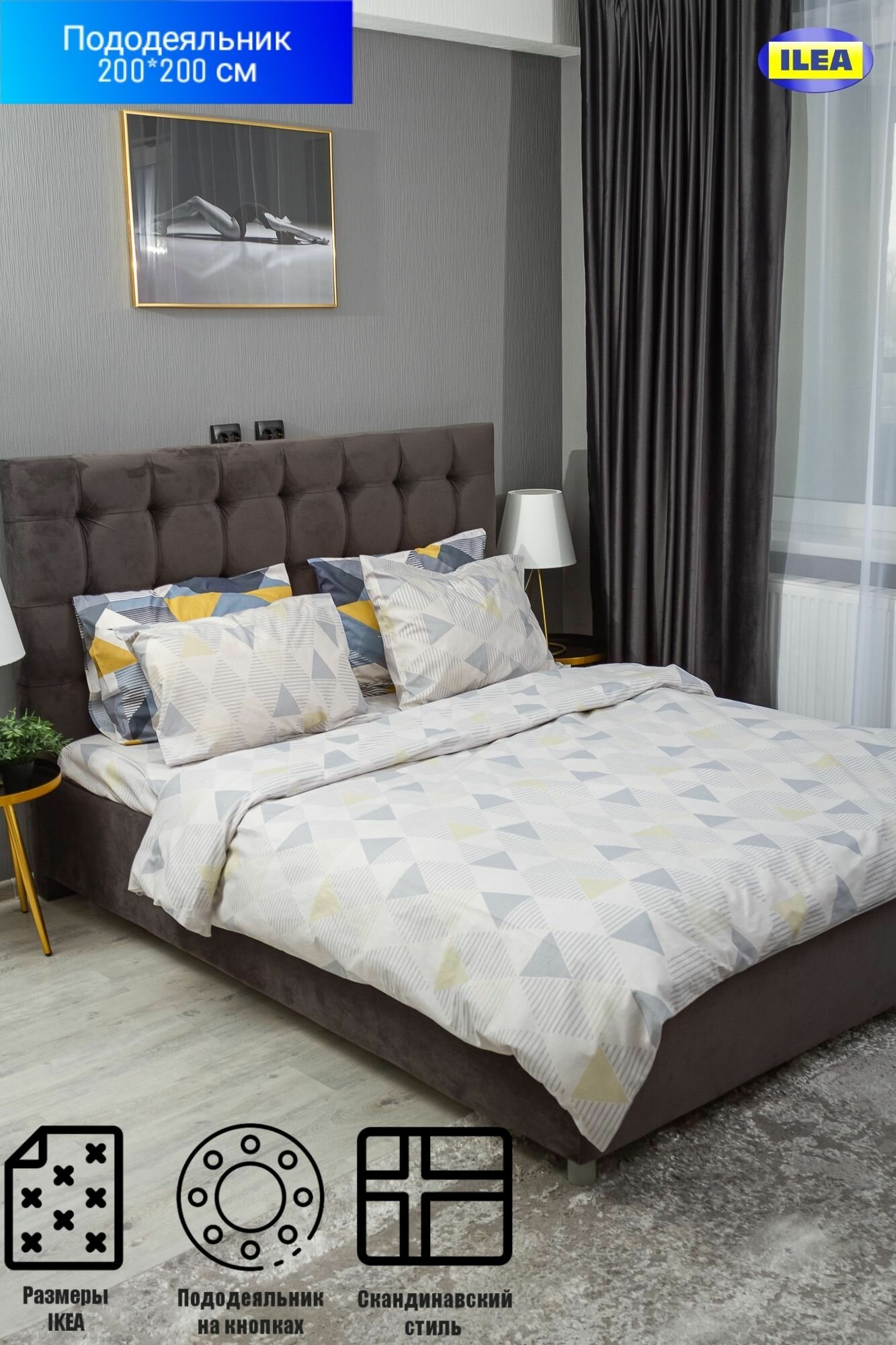 Пододеяльник ILEA Хэзтфипла Серый с желтым Перкаль 2-х спальный 200х200 см