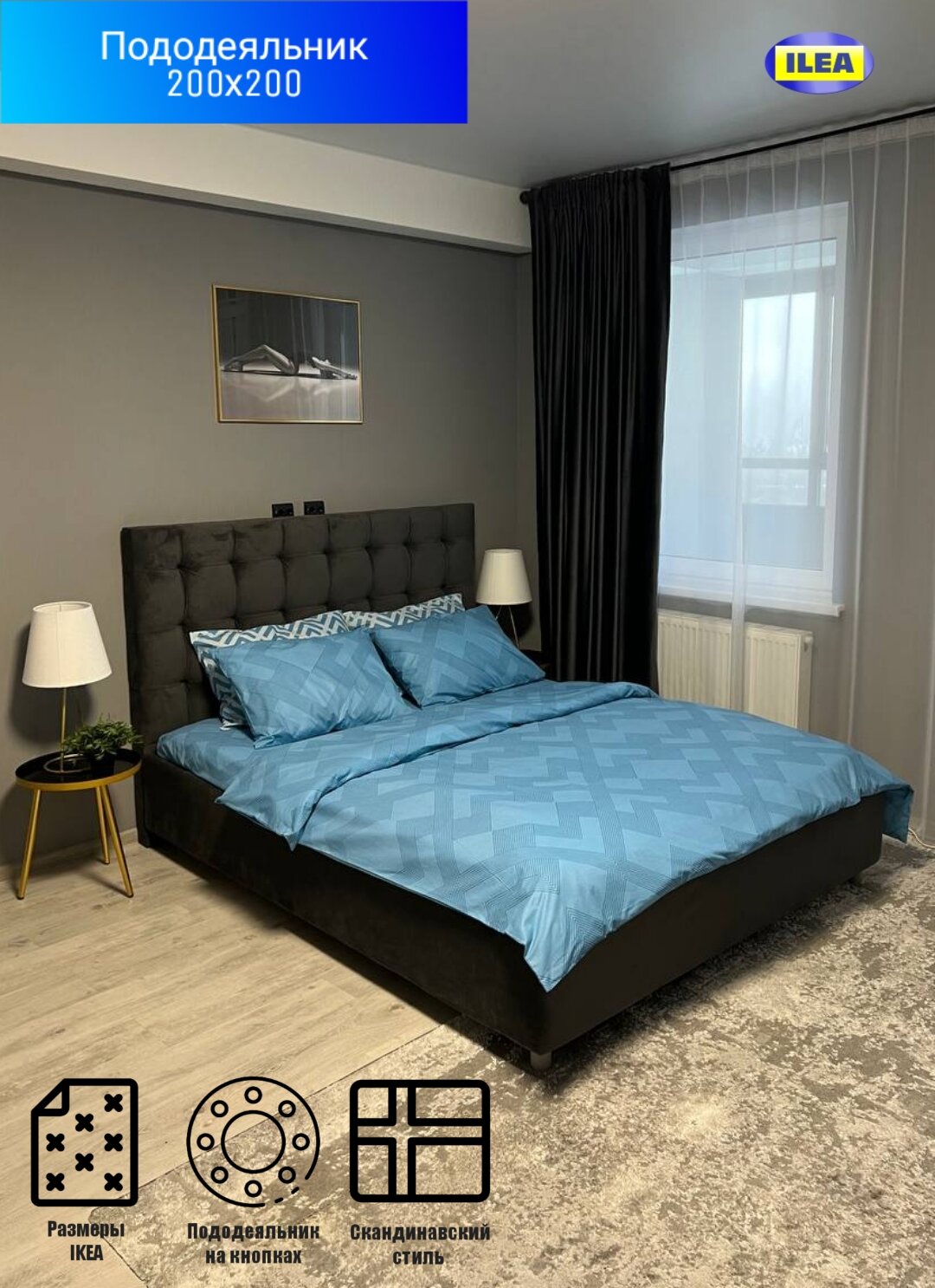 Пододеяльник ILEA Энксилья Графит Перкаль 2-х спальный 200х200 см
