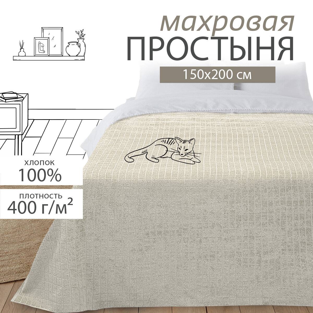 Простыня махровая хлопок полутороспальная 150*200 см Квадро, бежевый, 1,5 спальная