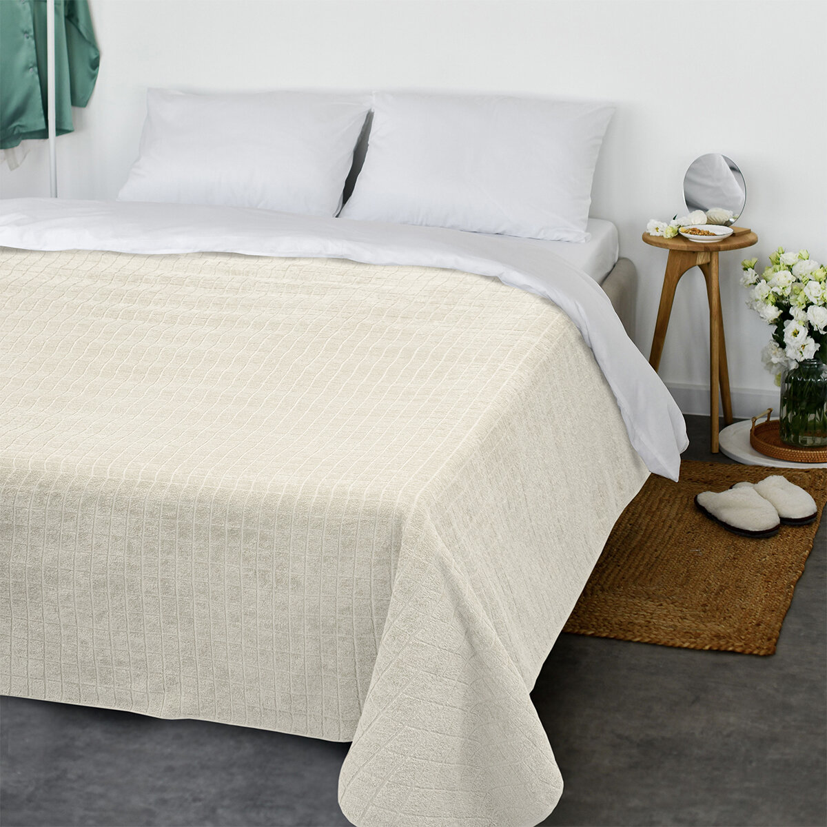Простыня махровая хлопок полутороспальная 150*200 см Квадро, кремовый, 1,5 спальная