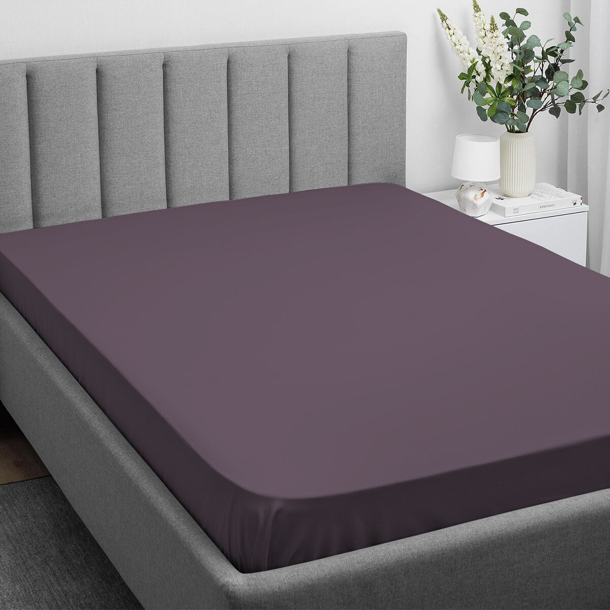 Простыня на резинке 1 спальная 90х200, Monocolor, сатин, цвет графит