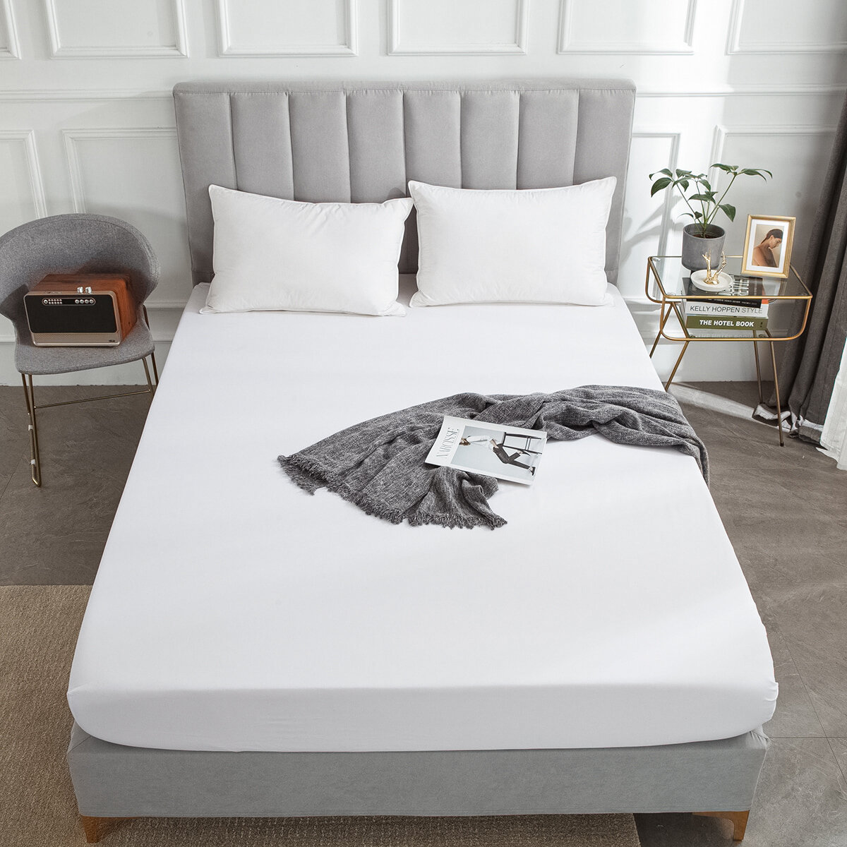 Простыня на резинке 2 спальная 160*200 Monocolor сатин хлопок /цвет белый