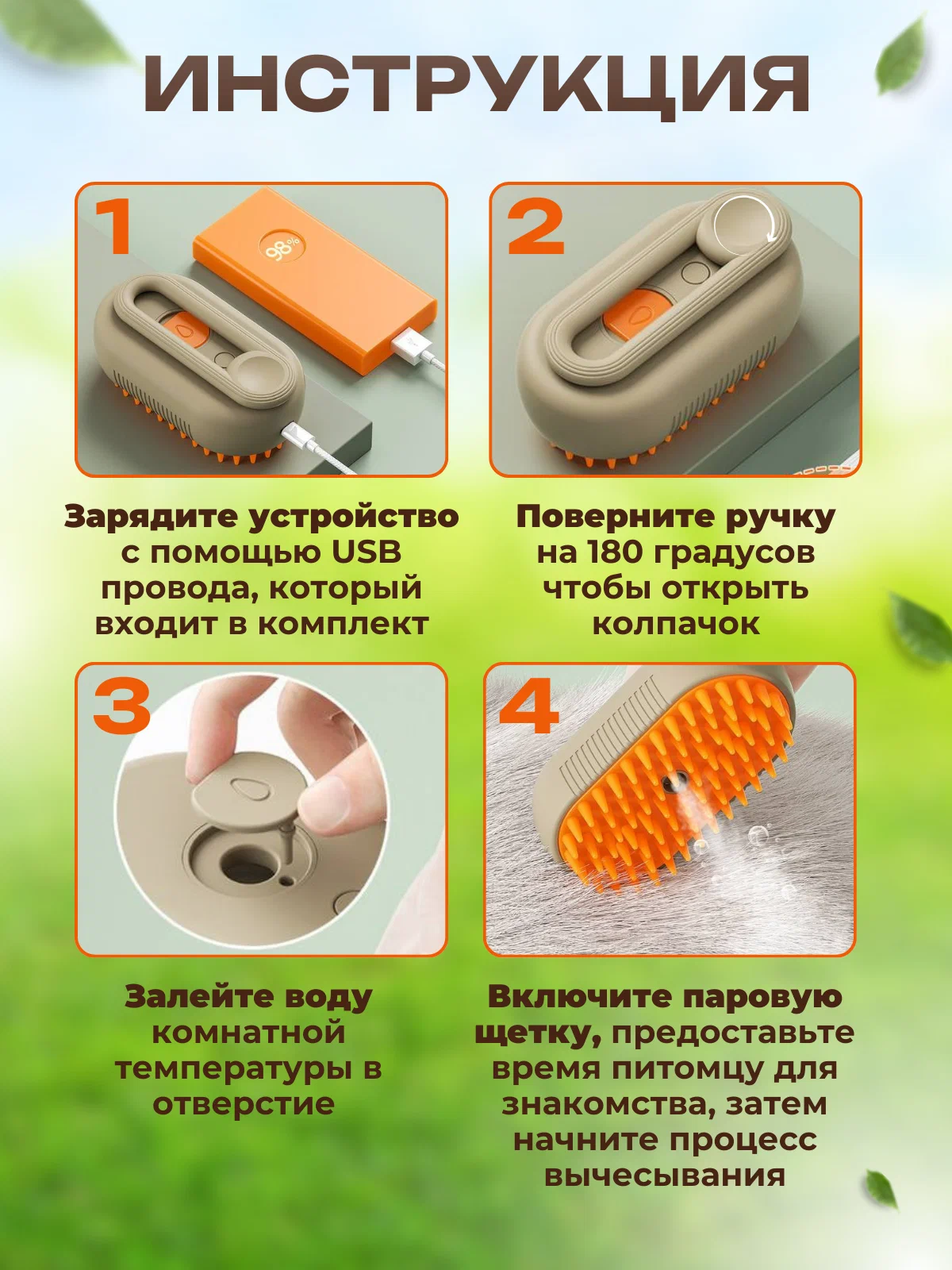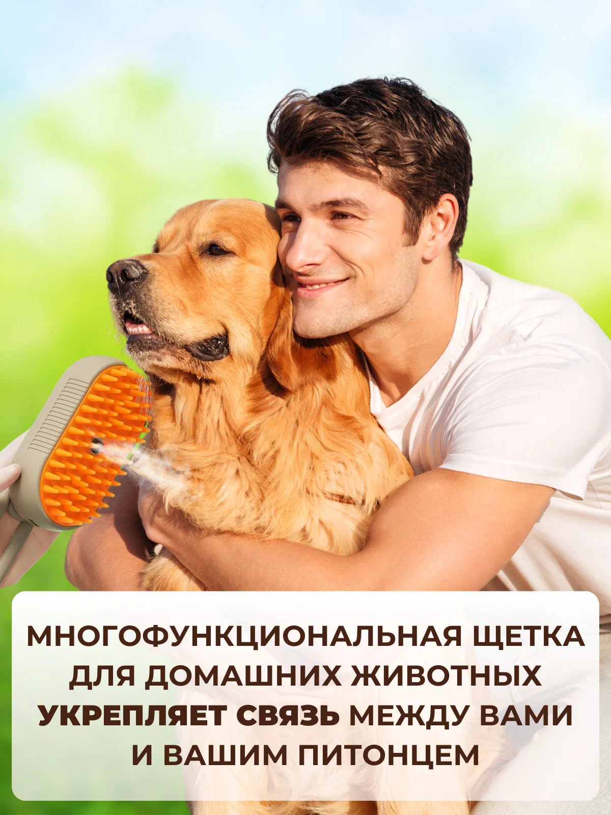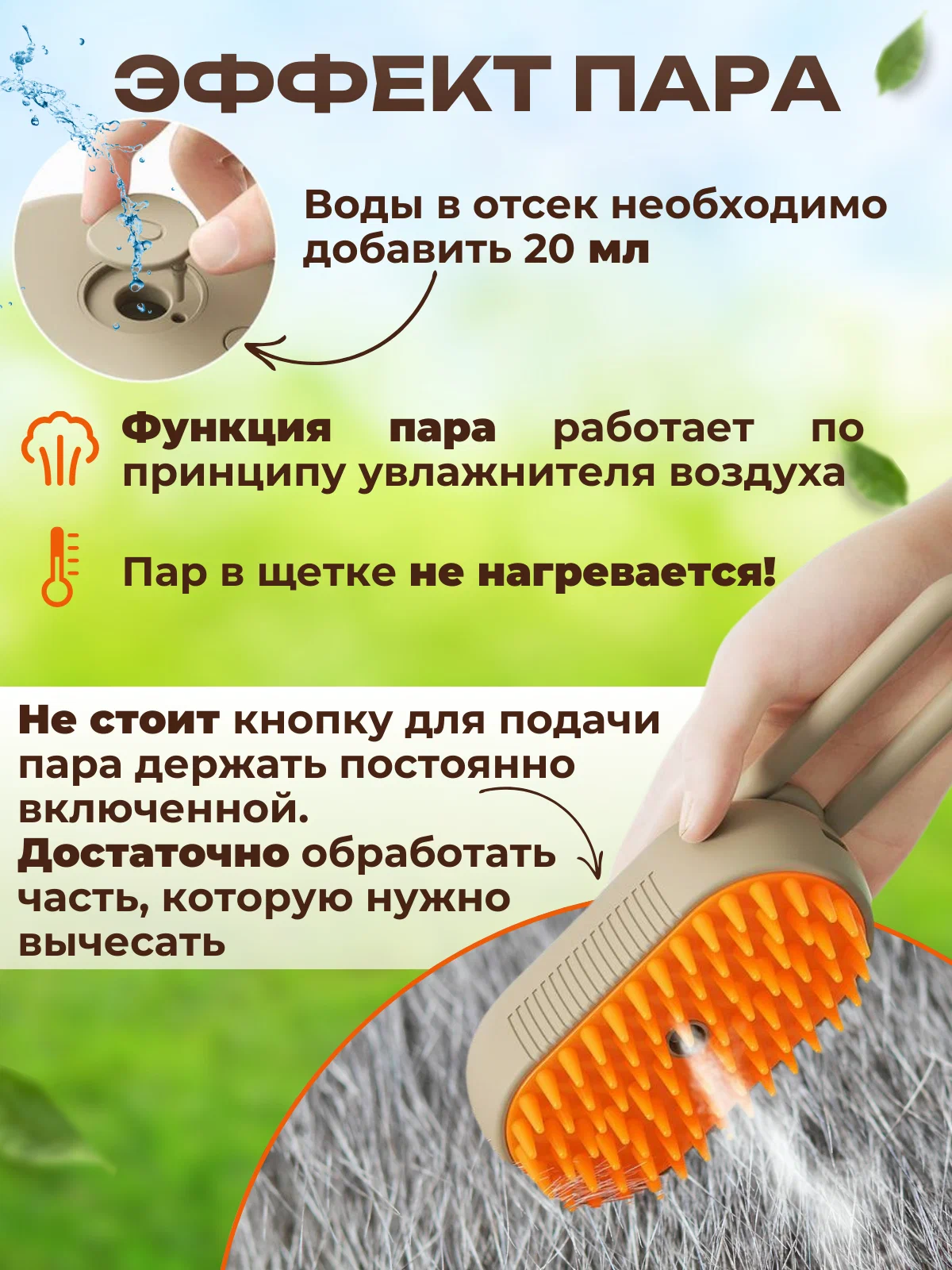 Паровая щетка для кошек и собак силиконовая расческа 3 в 1, бежевый интересное: