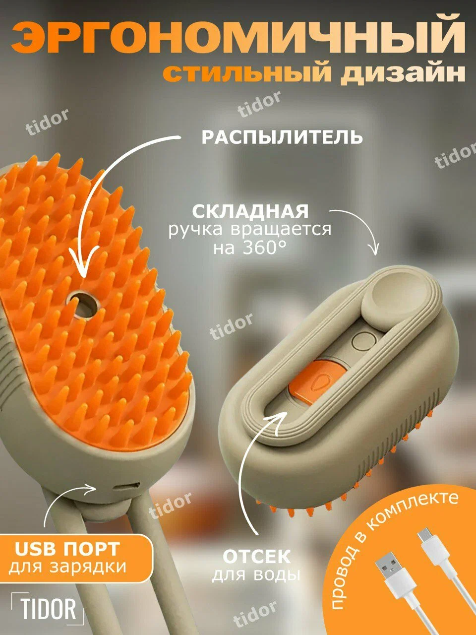 Купить Паровая щетка для кошек и собак силиконовая расческа 3 в 1, бежевый