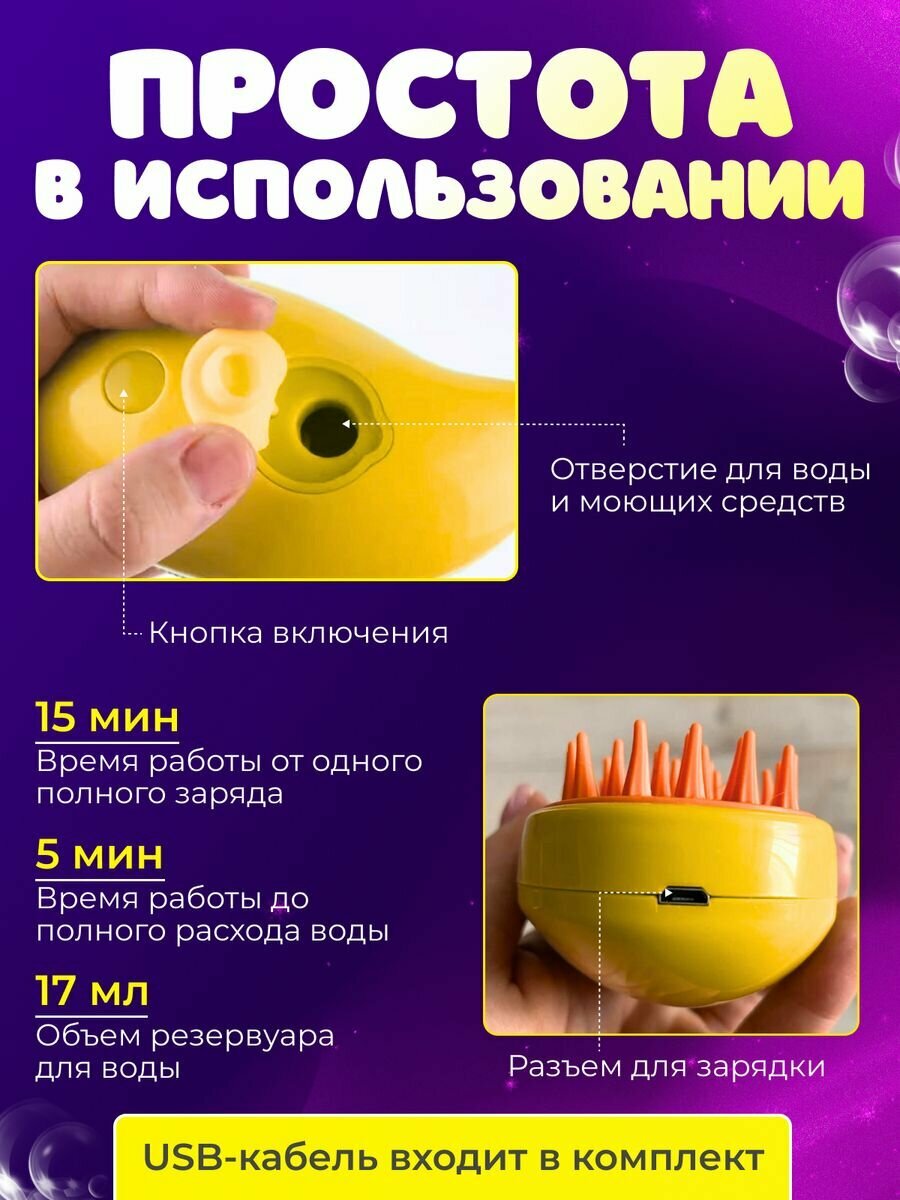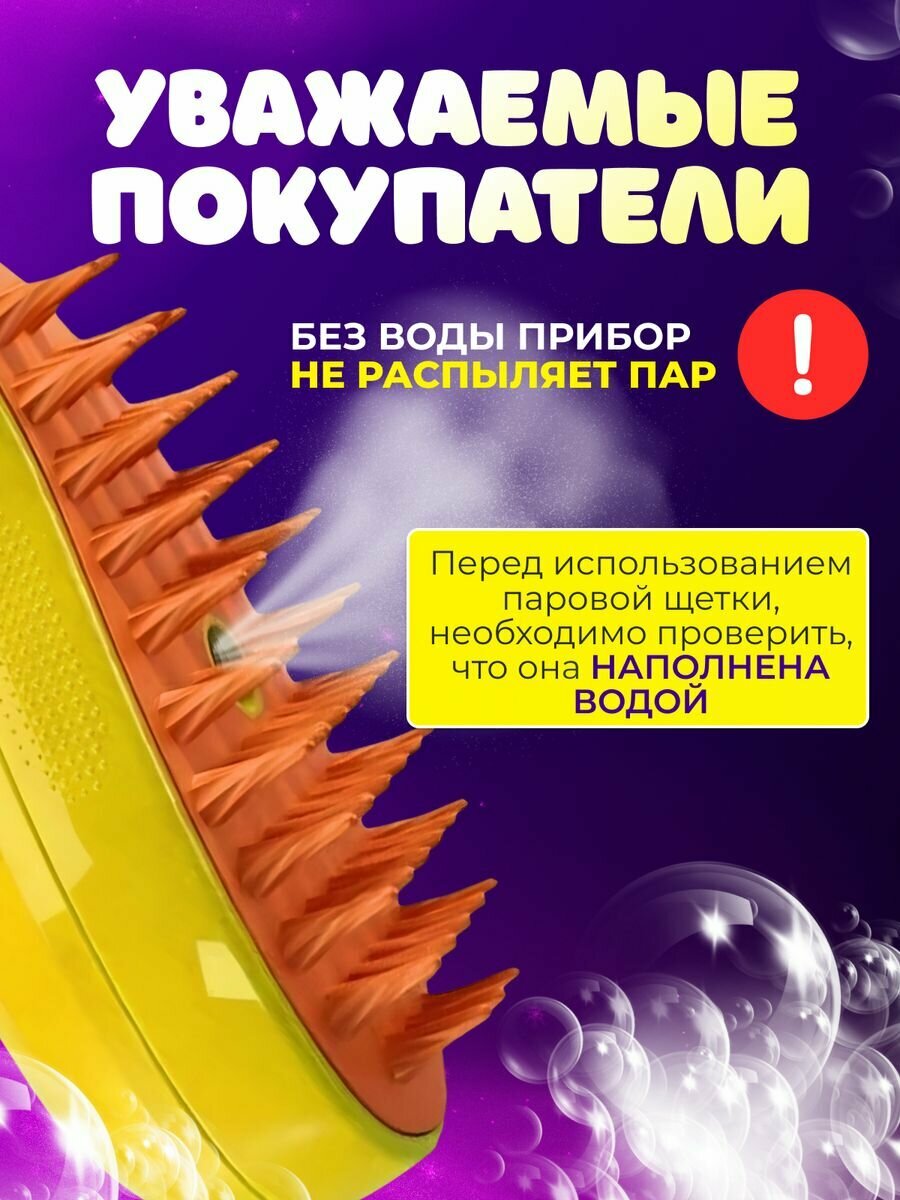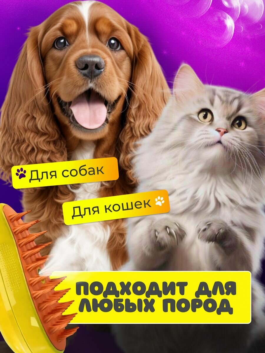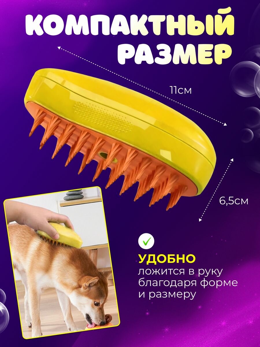 "Паровая щетка для животных" - расческа для котов и собак с функцией пара, желтая интересное: