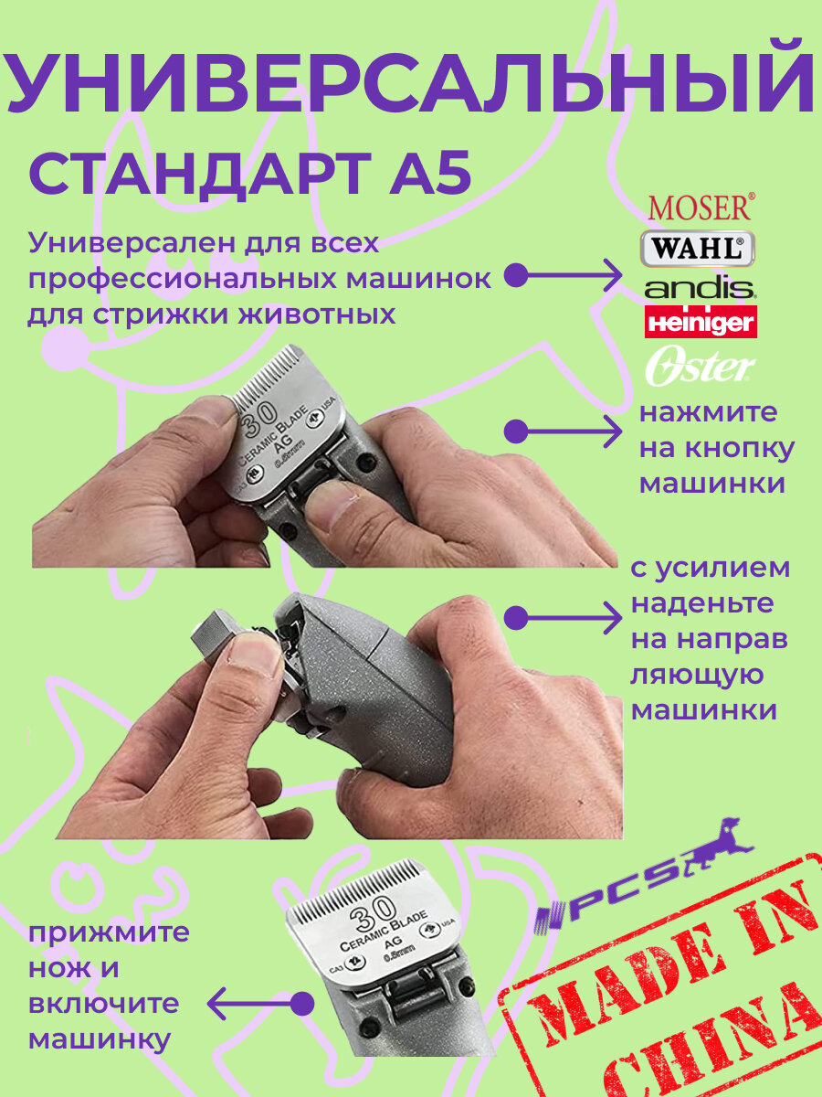 Ножевой блок PCS для стрижки животных 9,5 мм #4F стандарта А5 металлический интересное: